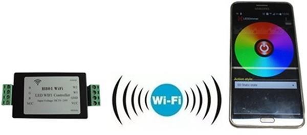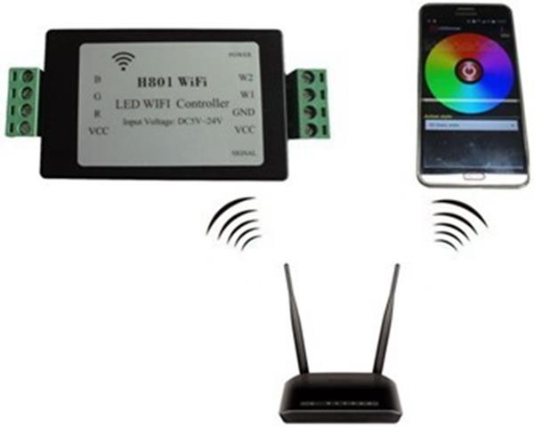 H801WiFi communicates with Android mobile phones through WiFi to achieve dimming function. Router can be set as an access point, you can connect your phone phone and H801WiFi to the same router. Once the phone and H801WiFi are connected to the same router, you can also set H801WiFi as an wireless access point so that another H801WiFi can connect to it, by this way, multiple H801WiFi can be connected wirelessly to prolong control distance and increase the number of controllers.
