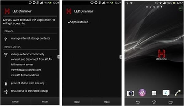 Step 1: Power on H801WiFi, install 'LED Dimmer' and create shortcut.