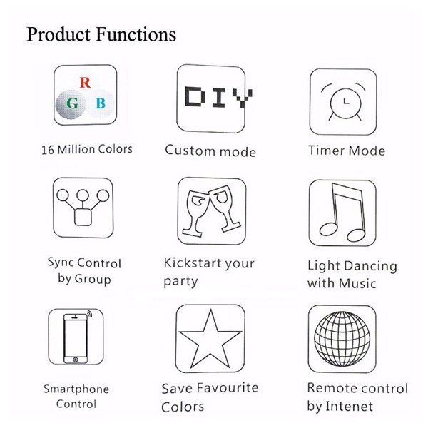 Connect way : R, G, B for LED Light, V+, V- for Power supply, and for WIFI signal reception