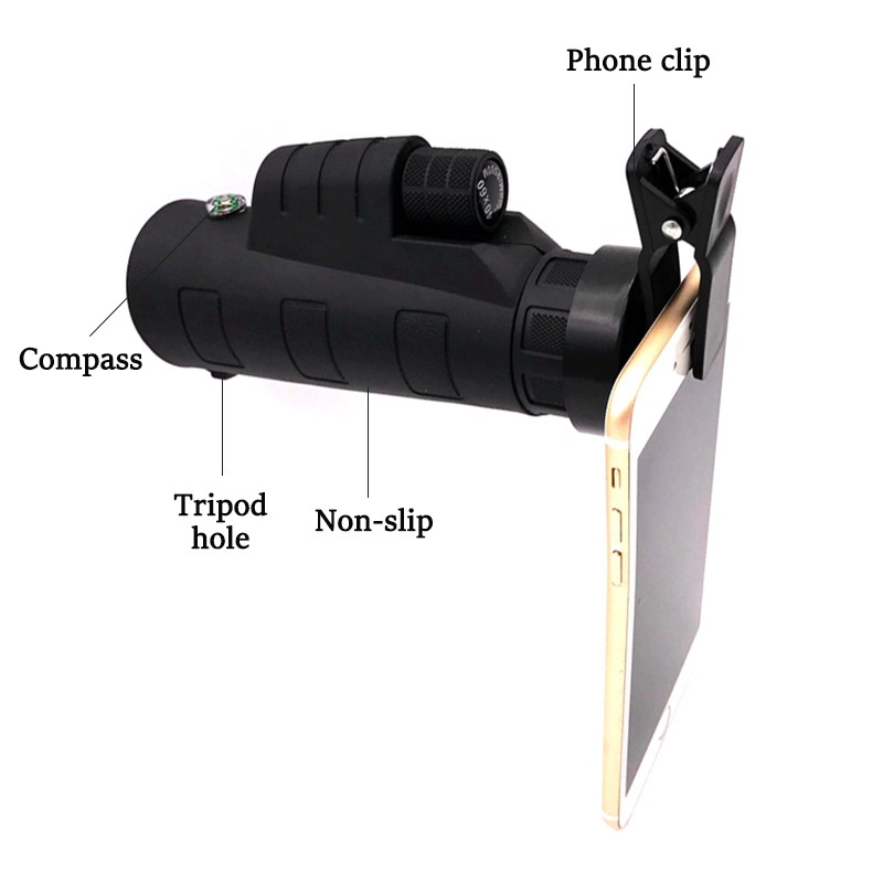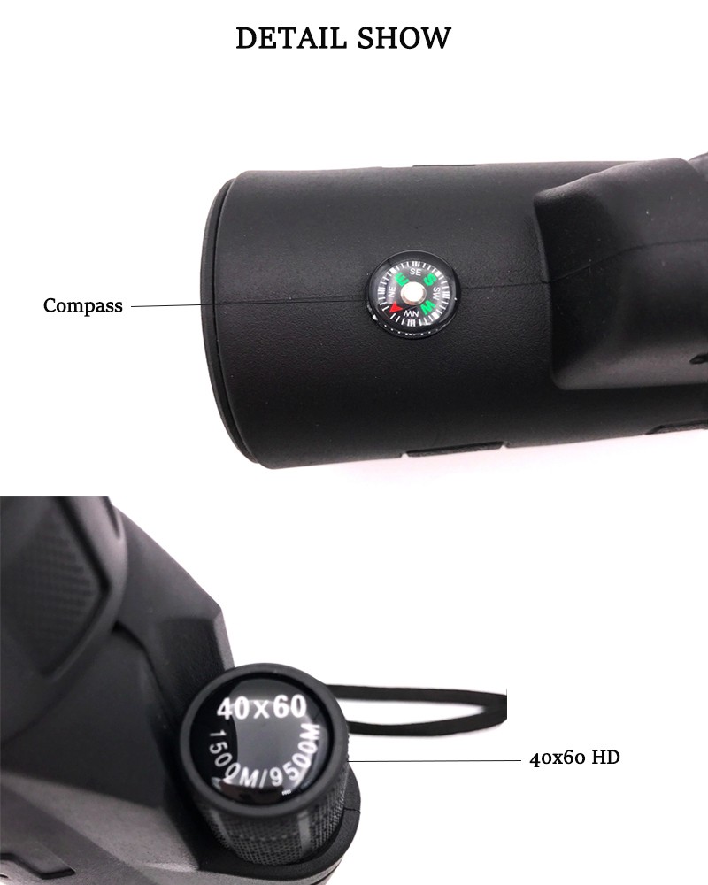 JINJULI 40x60 HD Mobile Telescope with Compass Portable Handheld Night Vision Low Light Binoculars