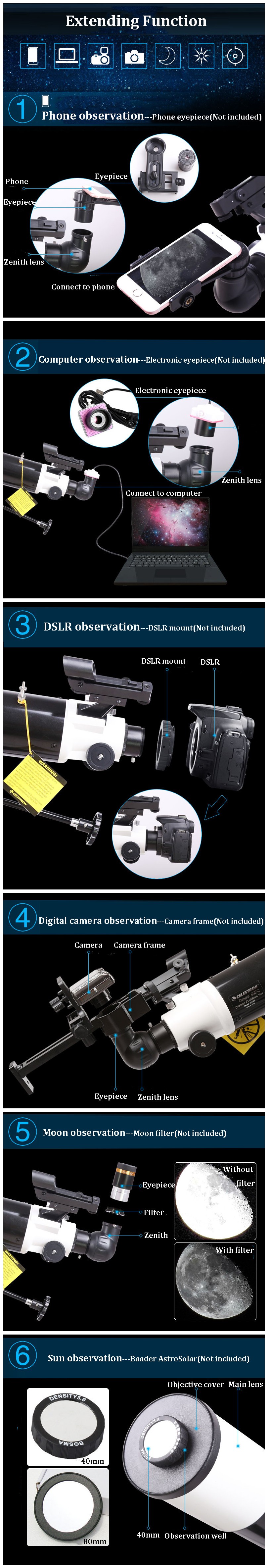 Stainless steel tripod, height adjustment, high load-bearing, more stable observation.