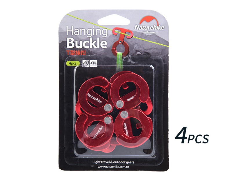 Naturehike NH15A006-K 4Pcs Aluminum Hanging Hook T Shape Folding Clasp Buckle Tent Rope Accessories