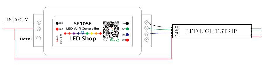 DC5-24V SP108E Smart Wifi APP Control Dimmer Controller for IC WS2811 WS2812B Magic Color LED Strip Light