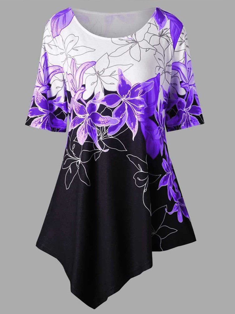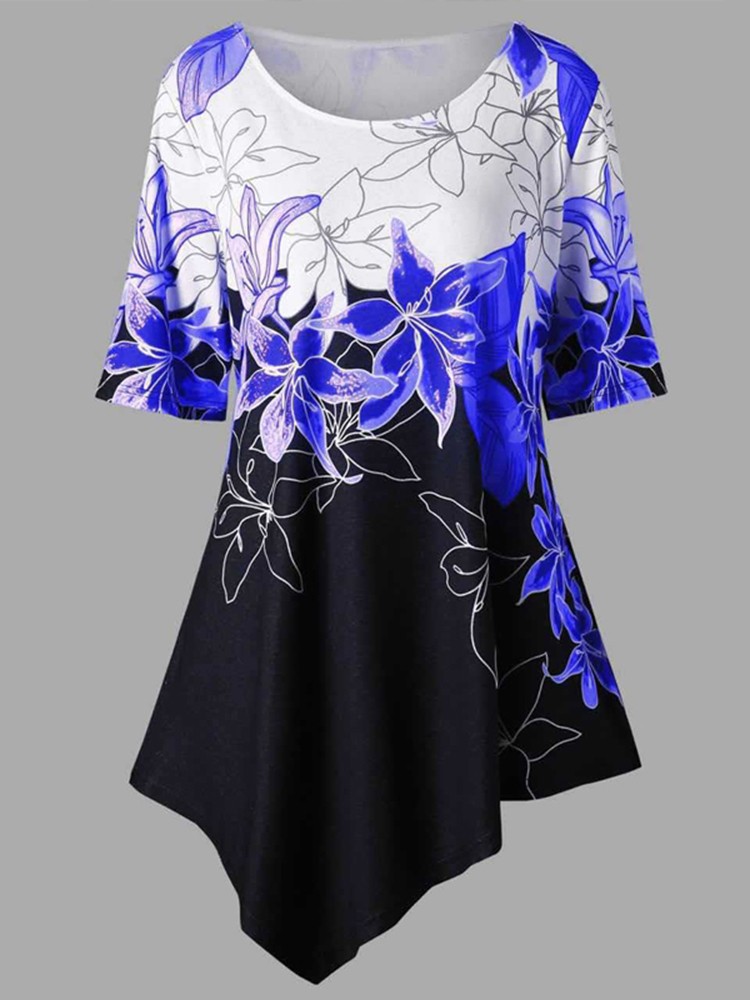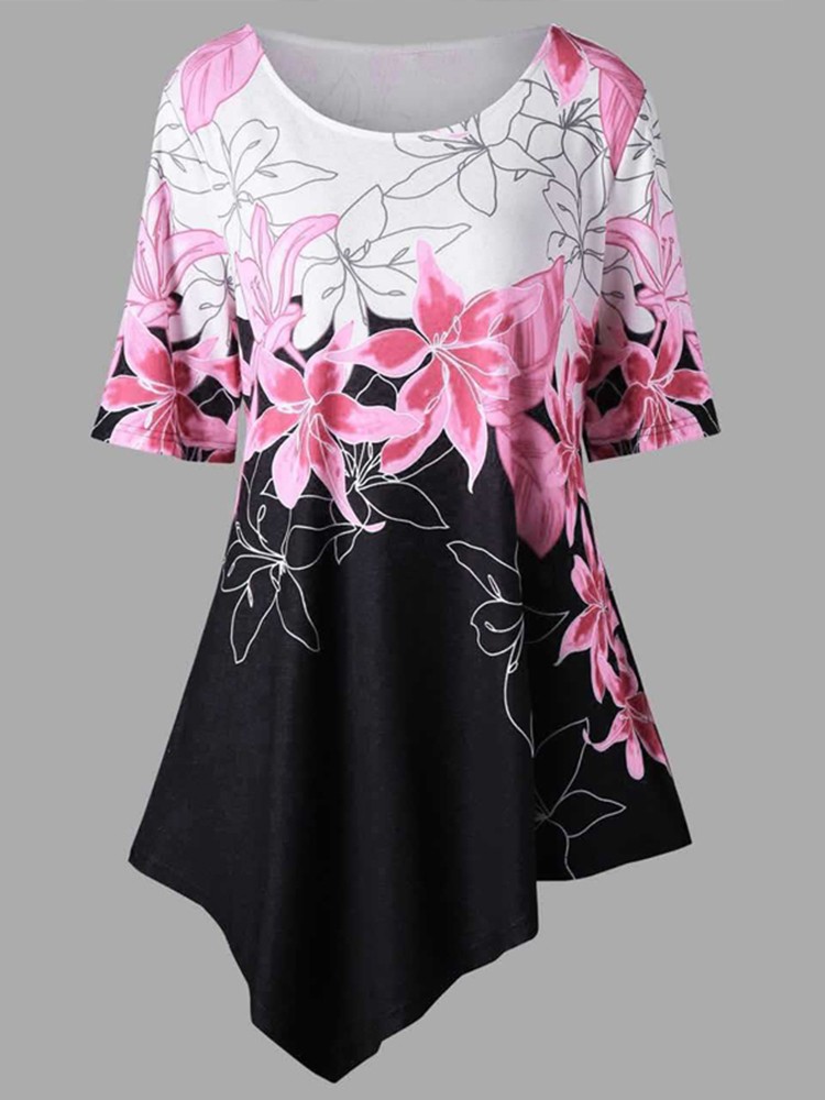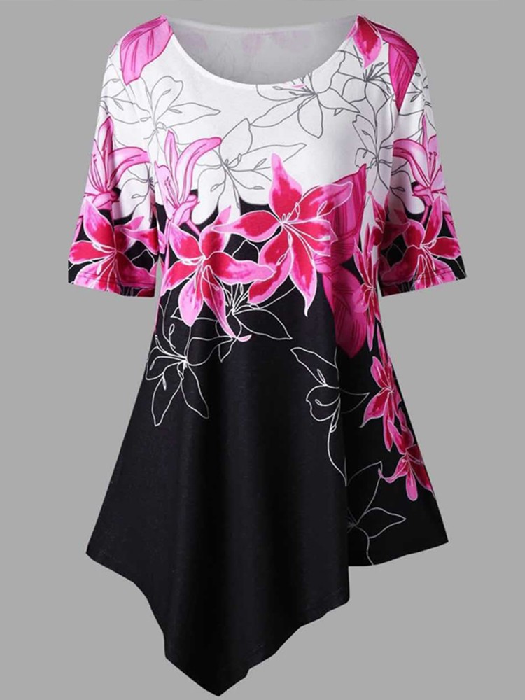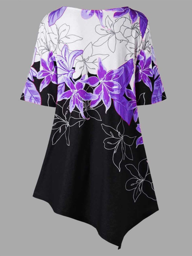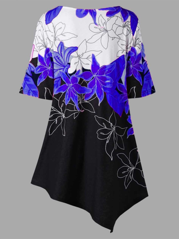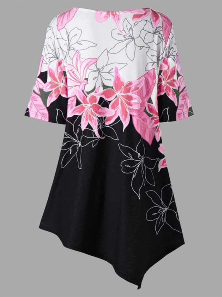 Bargainbasement.club Women Elegant Floral Print Irregular Hem Blouse