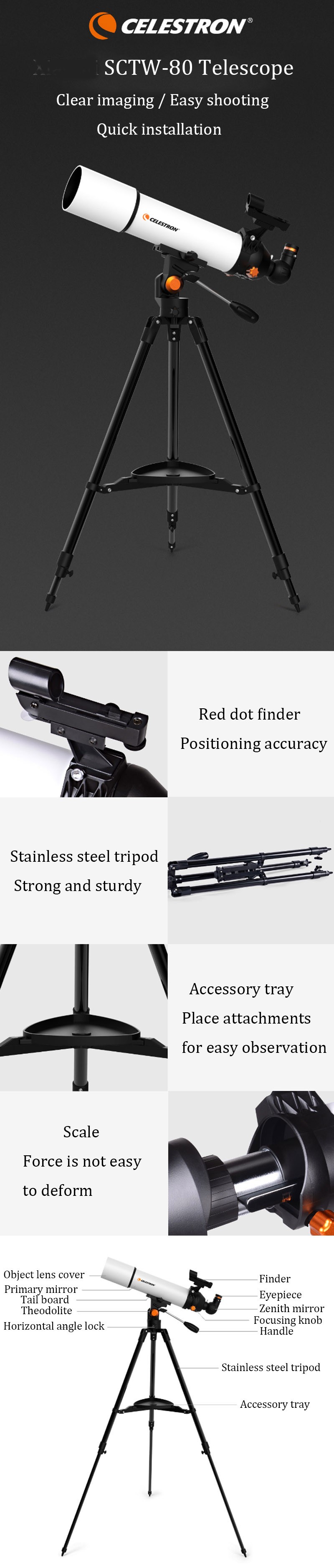 CELESTRON SCTW-80 200X HD Zoom Refractive Astronomical Telescope 80mm Caliber Red Dot Finder High Magnification Space Monocular