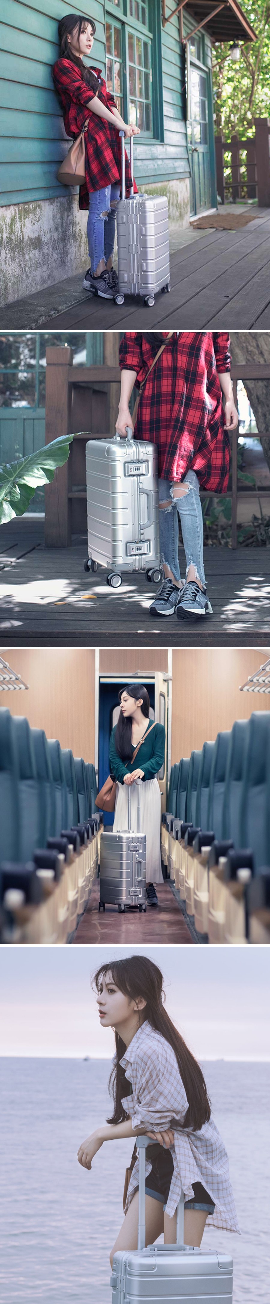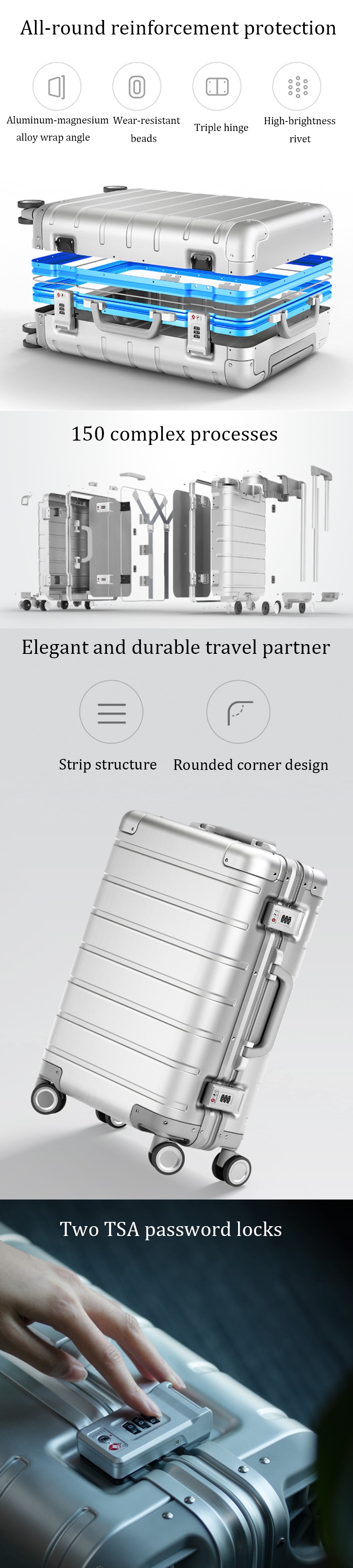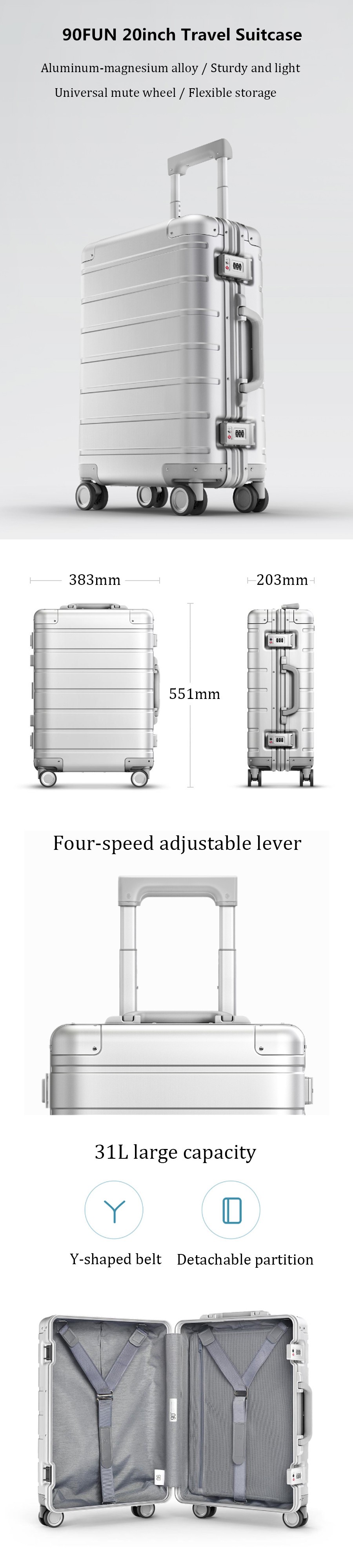 90FUN 20inch Travel Suitcase 31L Aluminum Alloy TSA Lock Spinner Wheel Carry On Luggage Case from