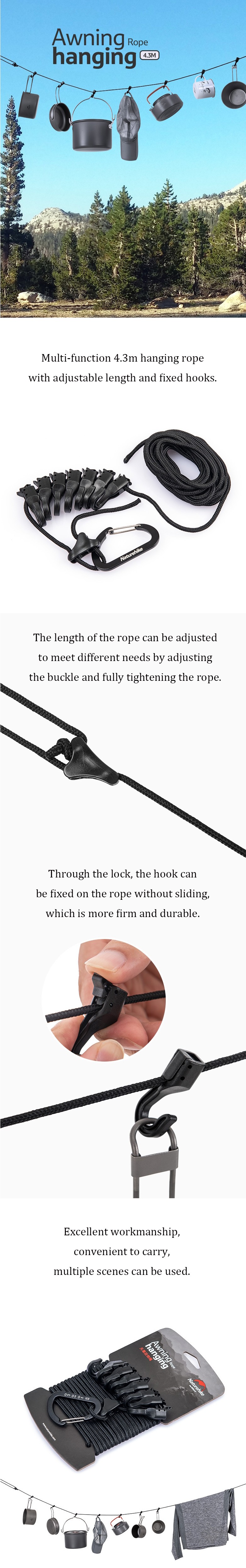 Naturehike NH19PJ040 4.3M Camping Awning Hanging Rope Adjustable Clothesline Outdoor Travel
