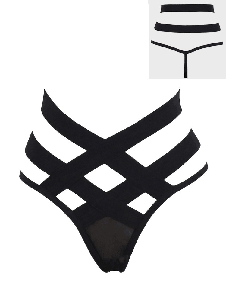 Plus Size High Waist Cross Criss Tempting Thong Panties Briefs