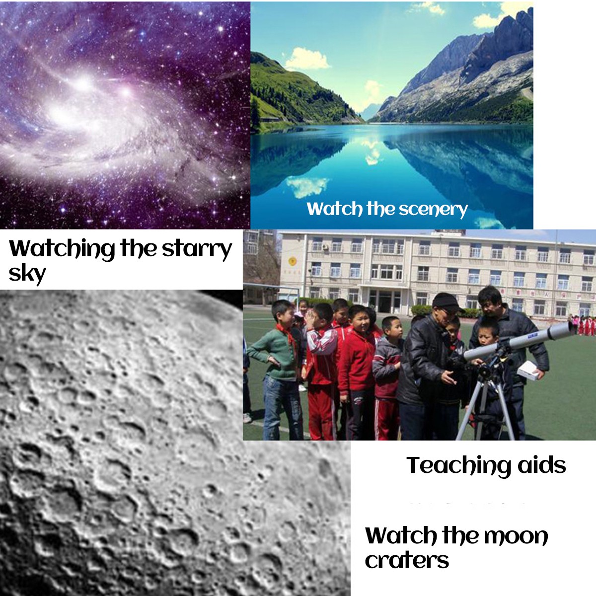 -Telescope meets all the needs of beginners, and the kids’ astronomical journey begins from here! Whether it's watching stars and moons at night or observing planets, telescope is the best helper for kids & astronomy beginners.