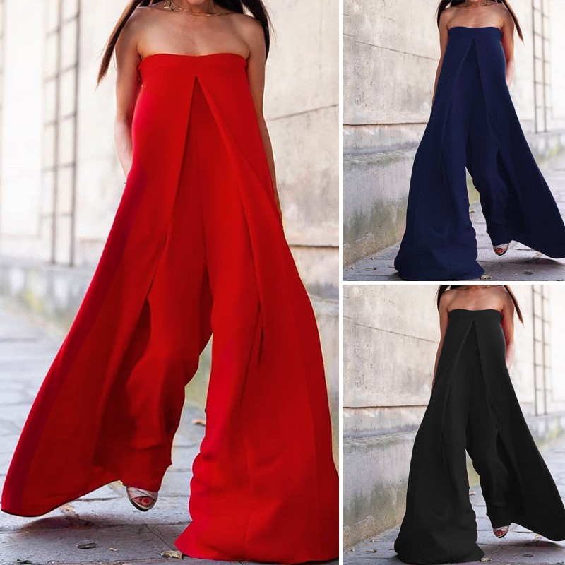 Casual Solid Tube Loose Wide Leg Maxi Jumpsuits