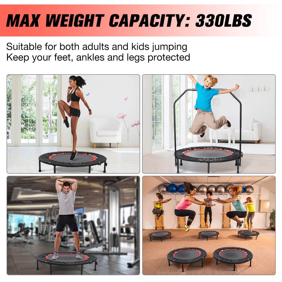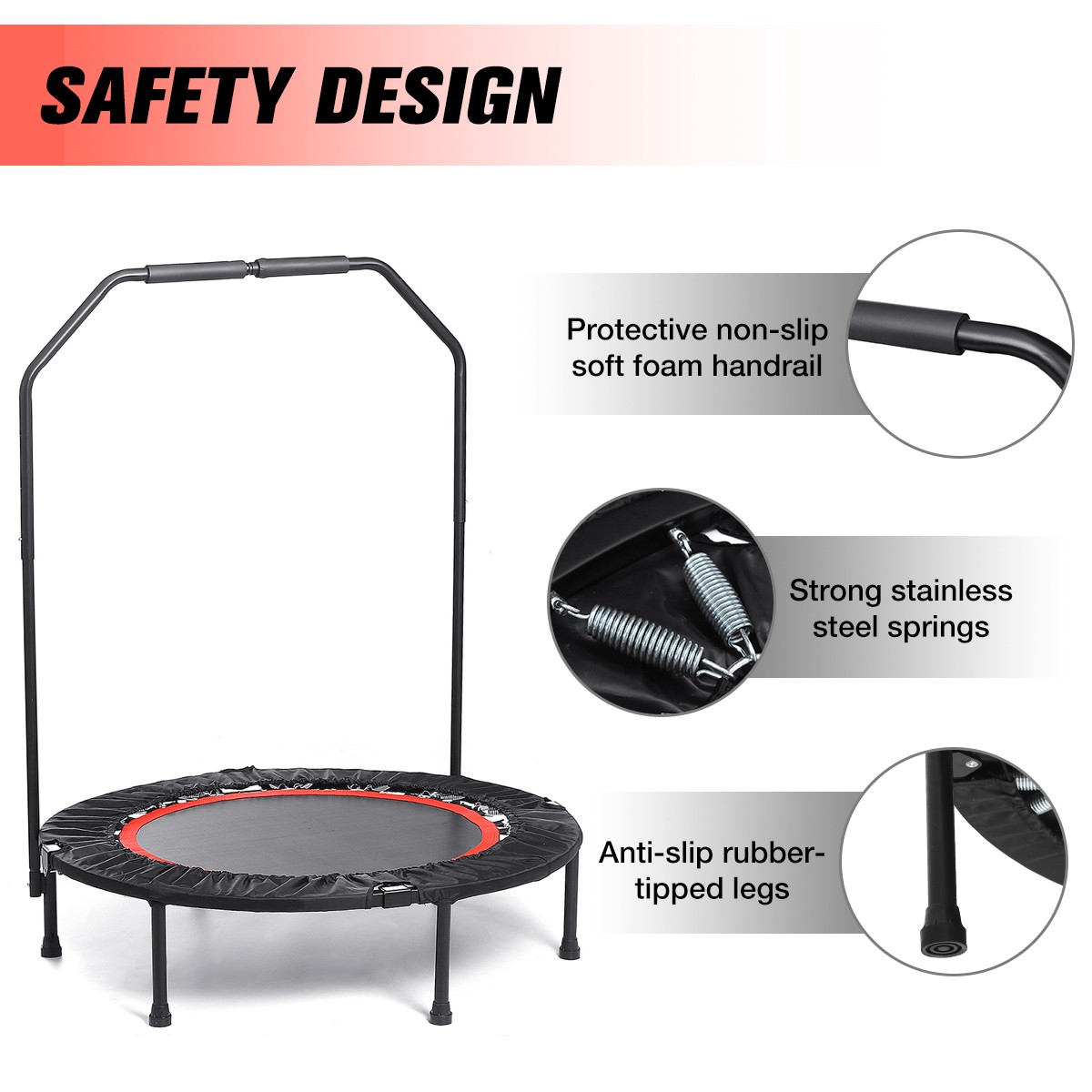 TOOCA Mini Trampoline Rebounder Max Load 220lbs Exercise Trampoline with Adjustable Handrail for Indoor/Garden/Workout Cardio