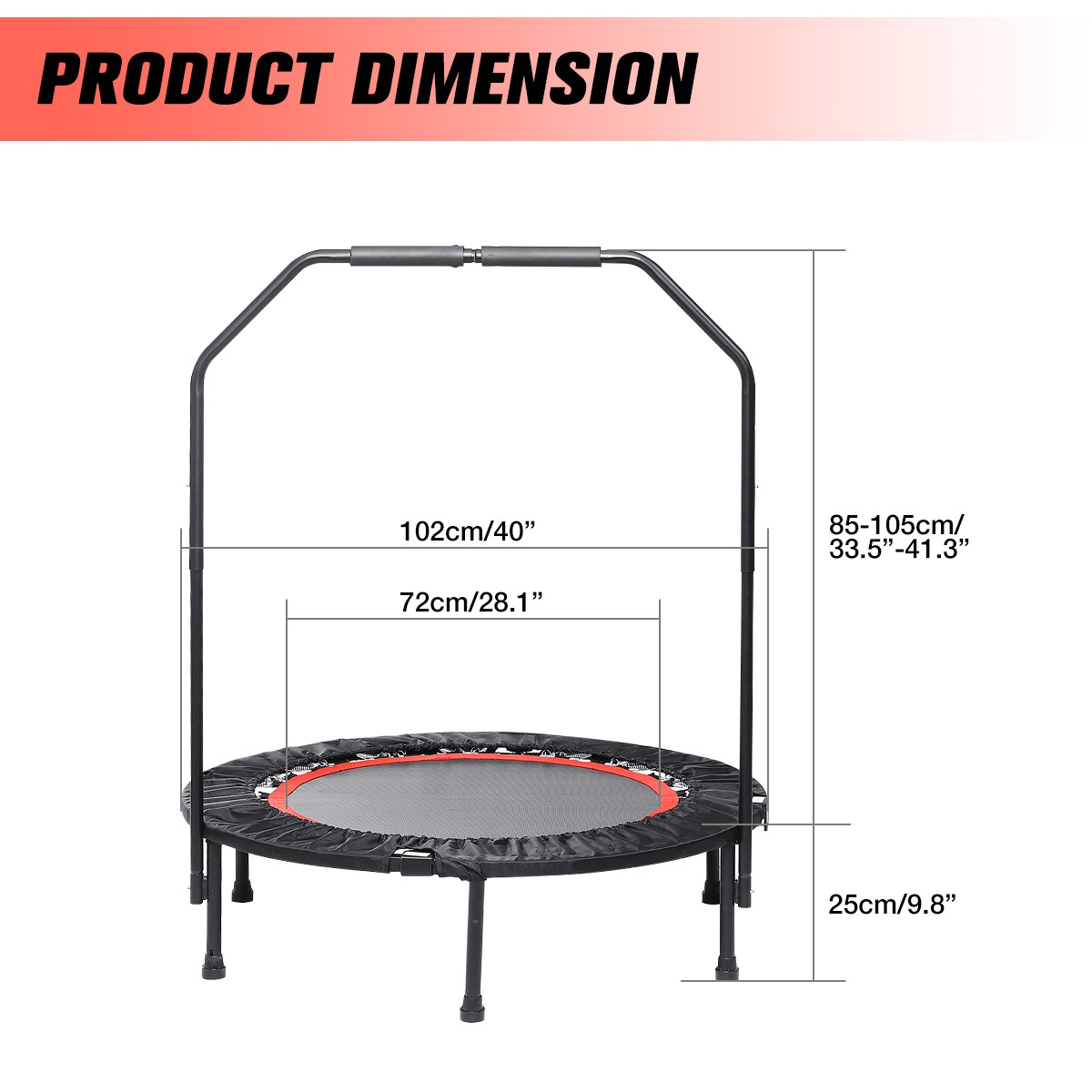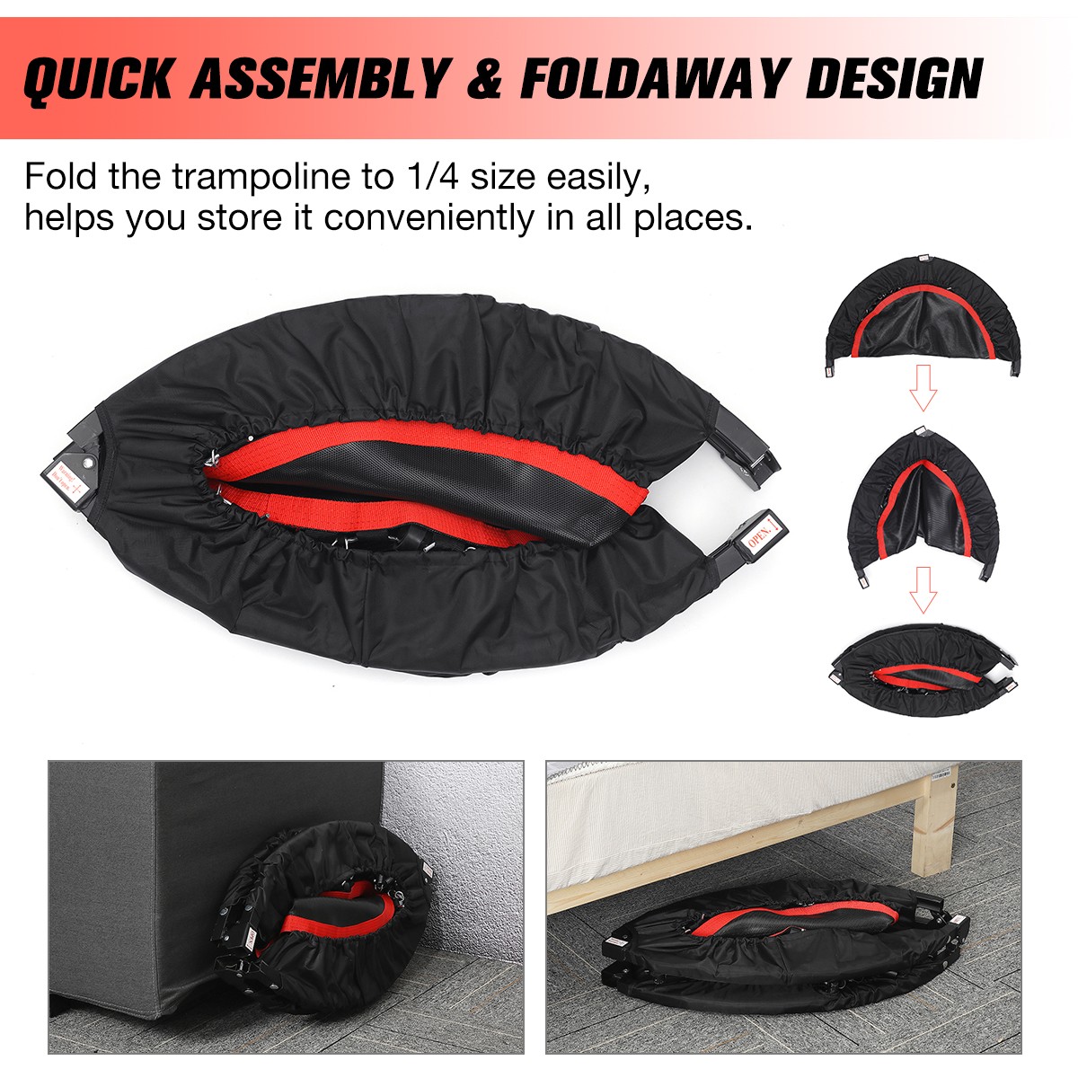 - Easy to Carry & Assemble: The mini trampoline can be folded two times, which saving you much storage space and easy to carry. Quick and easy to assemble, no additional tools required