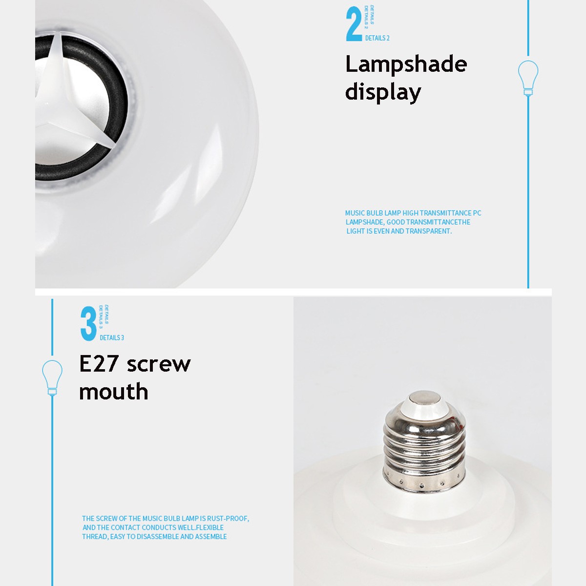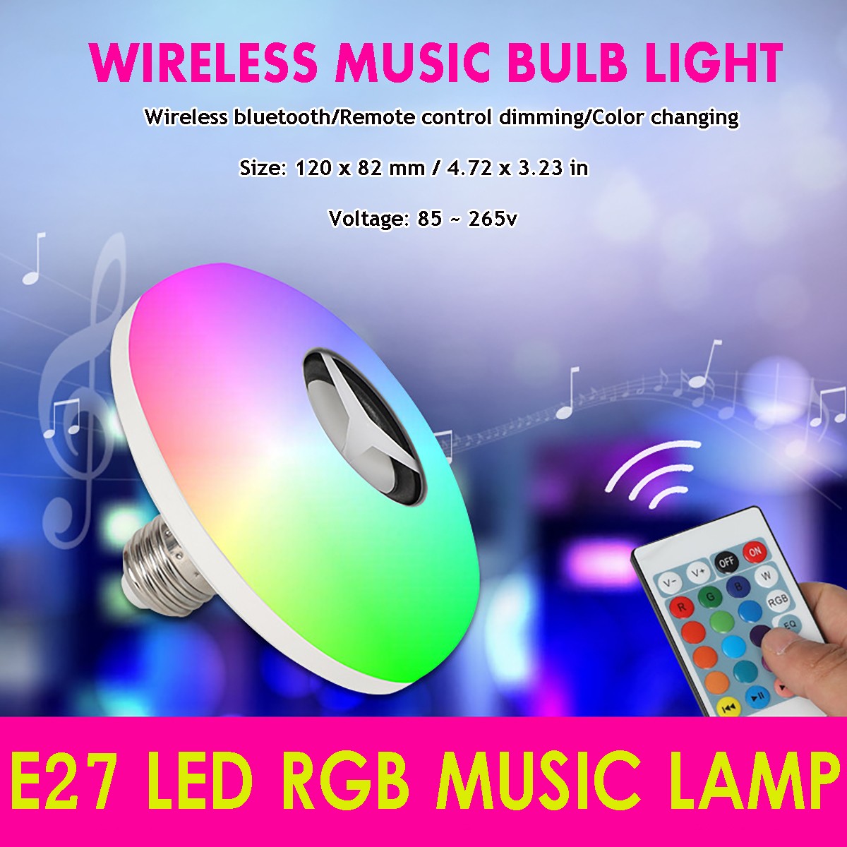 ● Compact size, lightweight, bluetooth connection music. ● Suitable for the bedroom, corridor, workshop, basement, garage, etc. ● Easy-to-Install and compatible with most mobile devices via bluetooth. ● 24Key Remote Controller - Change any color you want with a handy controller. ● The light bulb supports 12 kinds of light color conversion, which can make one color of the lamp long and bright. You can also choose RGB mode to change the light color and adjust the light color speed to match the rhythm of the song itself.