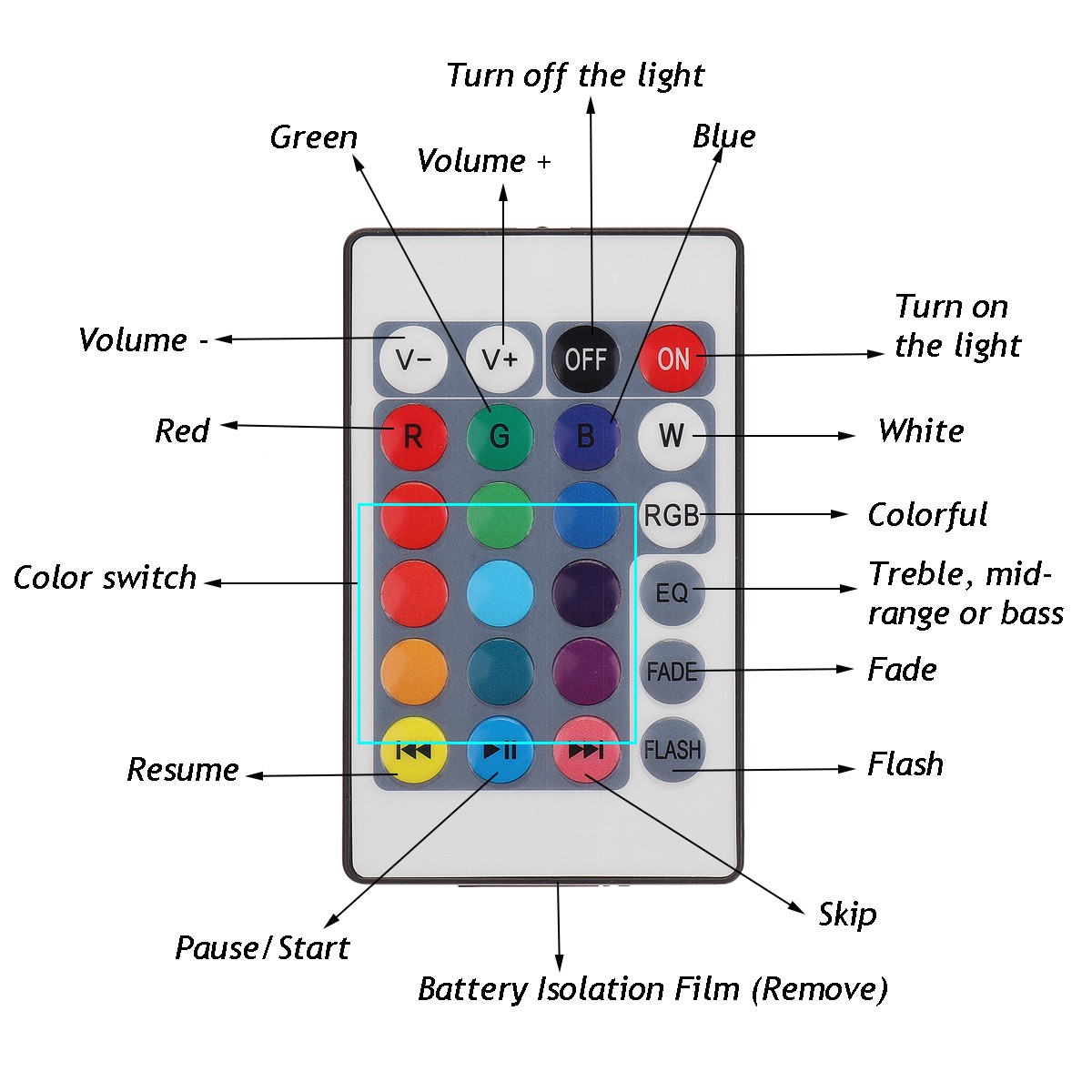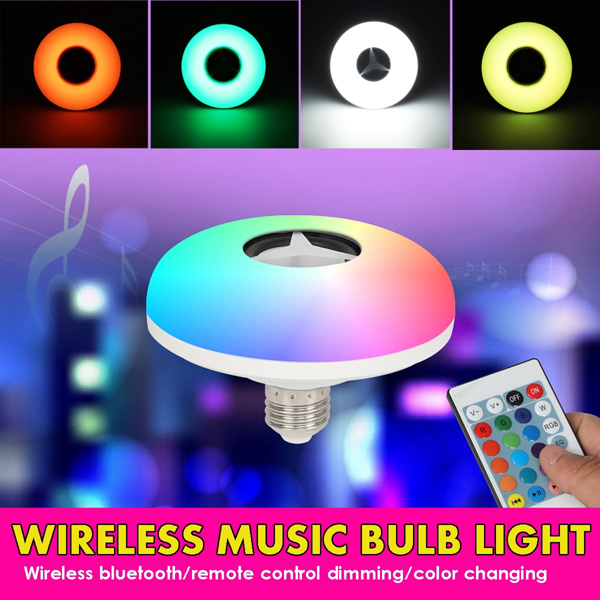 1 x Music Bulb 1 x Remote Control(A CR battery NOT INCLUDED) 1 x English Manual
