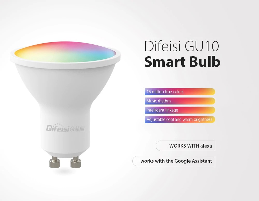 5Pcs Difeisi DFS-EC-G001 GU10 Smart Bulb 450LM Color Temperature 2700K-6500K Works with Alexa and Google Assistant