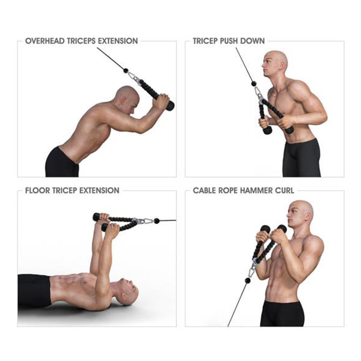 Tricep Rope Abdominal Crunches Cable Pull Down Laterals Biceps Muscle Training Fitness Body Building Gym Pull Rope