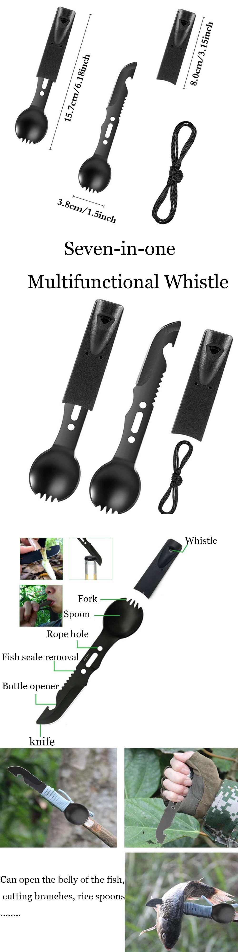 1.Multifunctional seven-in-one camping whistle knife, a knife multi-purpose.