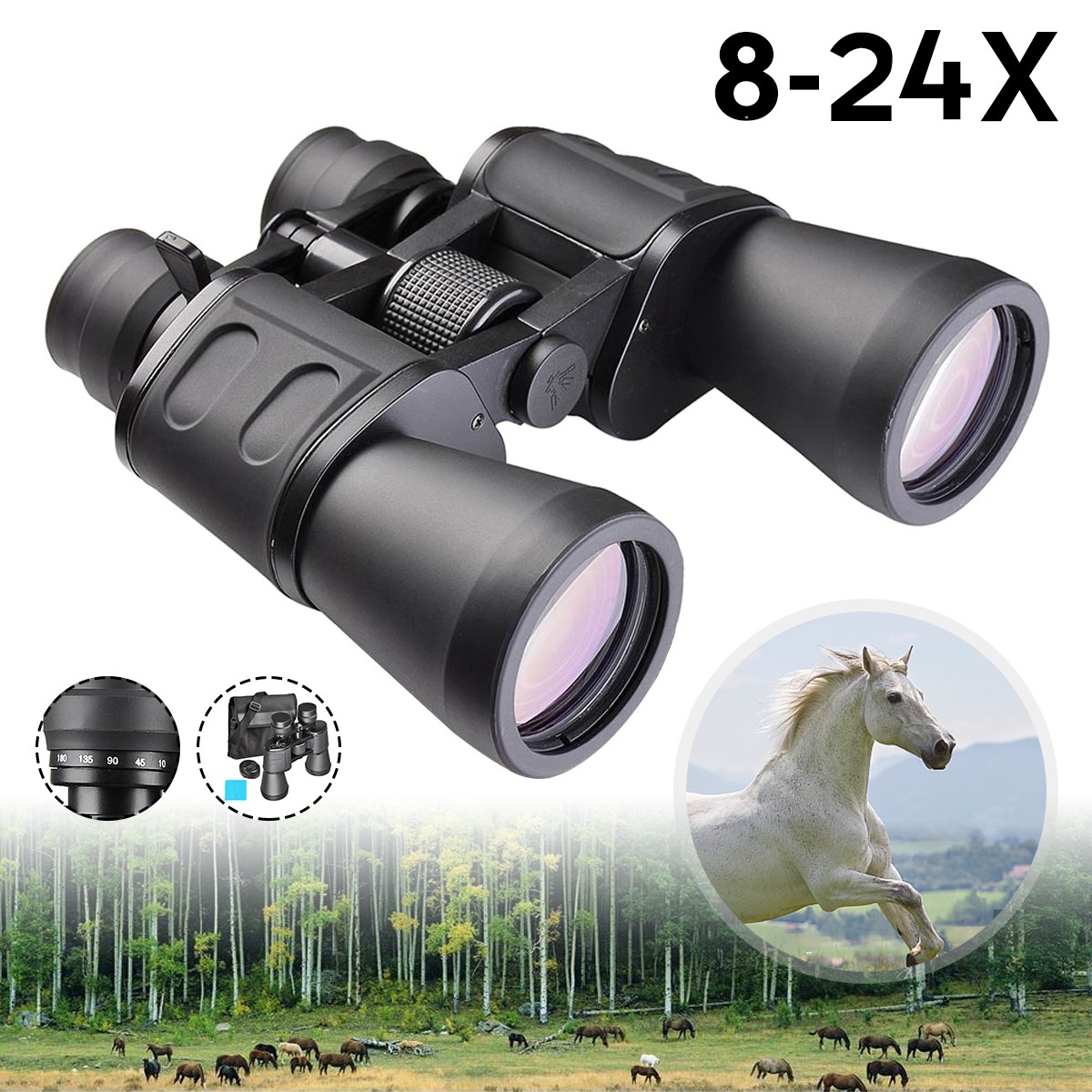 8-24x HD Binoculars Portable Bird Watching High Powered Night Vision Telescope Outdoor Hunting Travel Camping