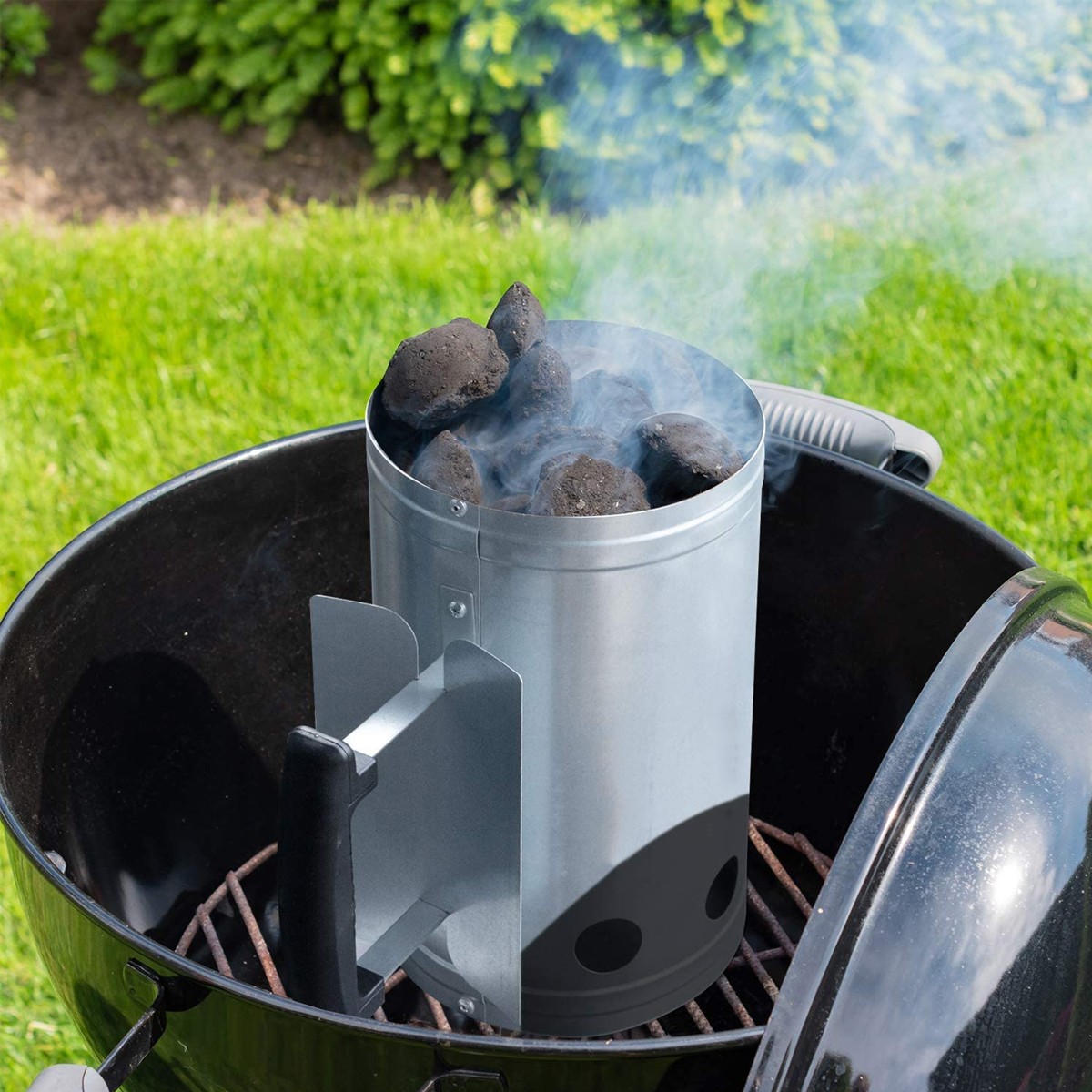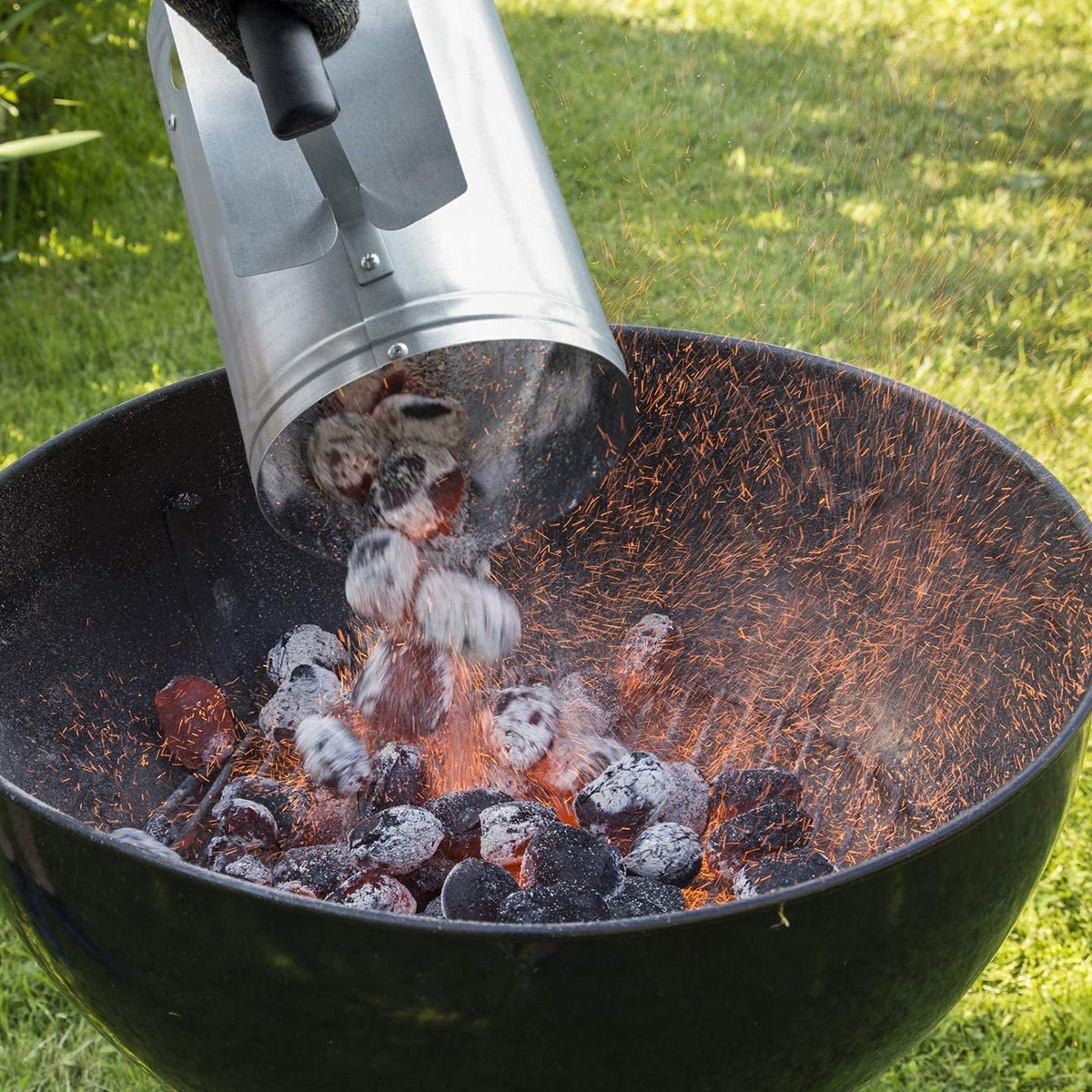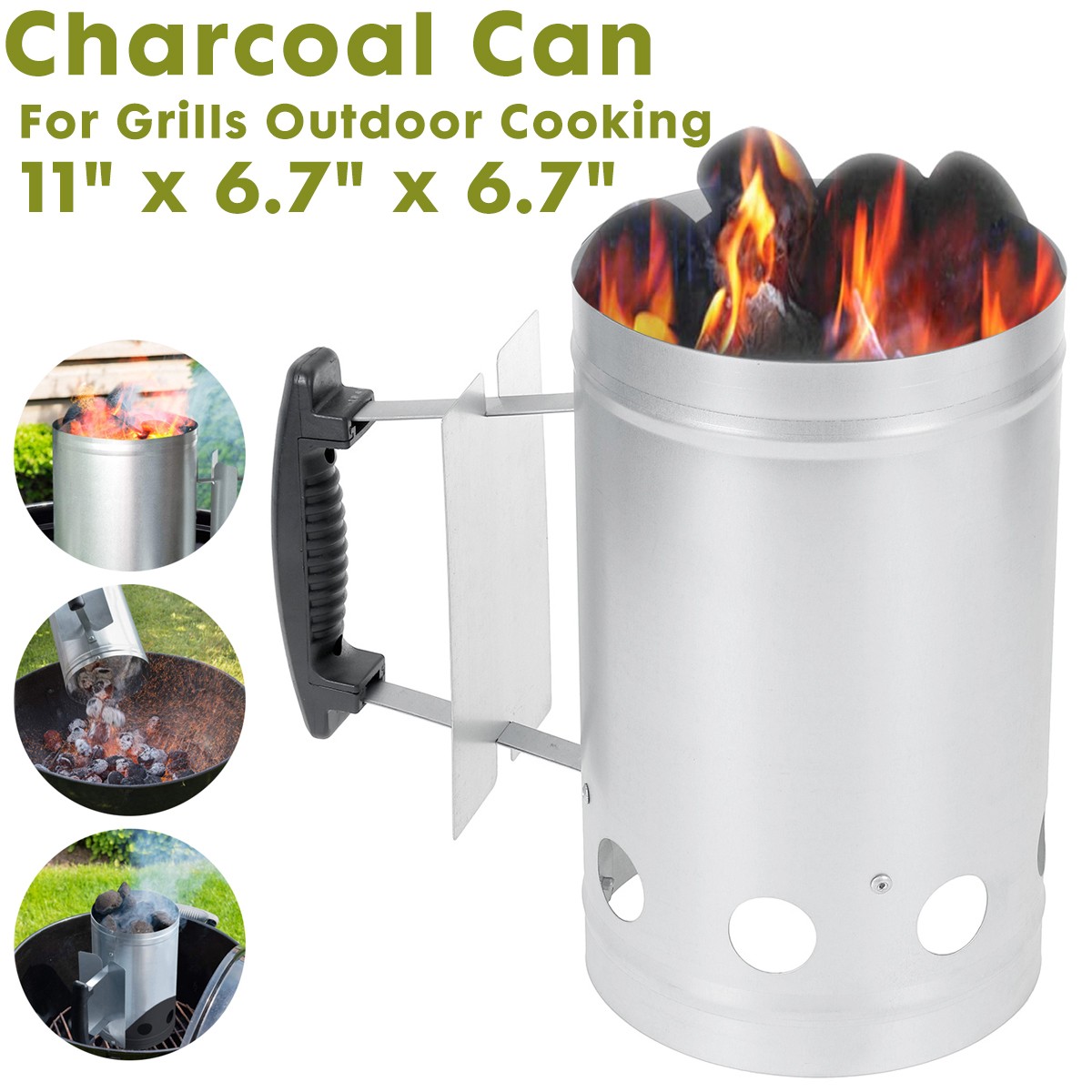 【EASIER】Charcoal chimney starter grill just use some abandon newspapers or other papers at the bottom of steel canister. light up crinkled up newspapers or papers with fire starter, and set the can cannister of coal starter over the flame. Please note: no more buying flammable bottles of liquid to squirt over your charcoal briquettes before lighting them.