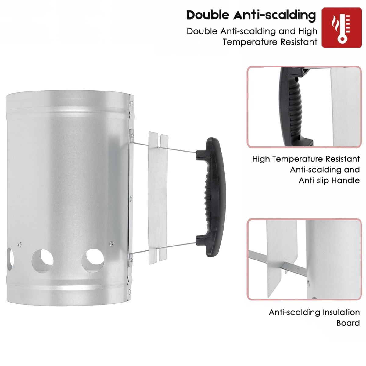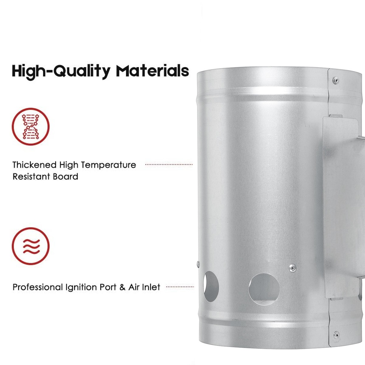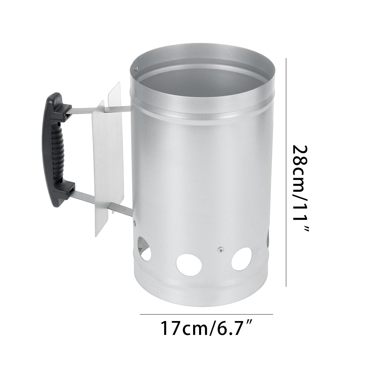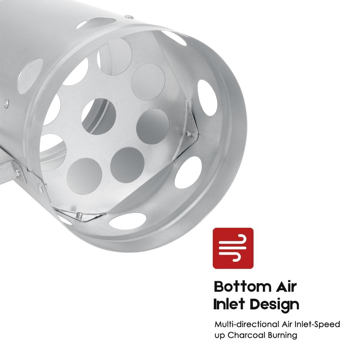 【LARGE CAPACITY & RUST-RESISTANCE】Charcoal starter measures 11" x 6.7" x 6.7", the canister holding up to 4 pounds of coal, larger capacity than other charcoal chimney starters. Steel of chimney starter is zinc plated for rusting resistance and long life.