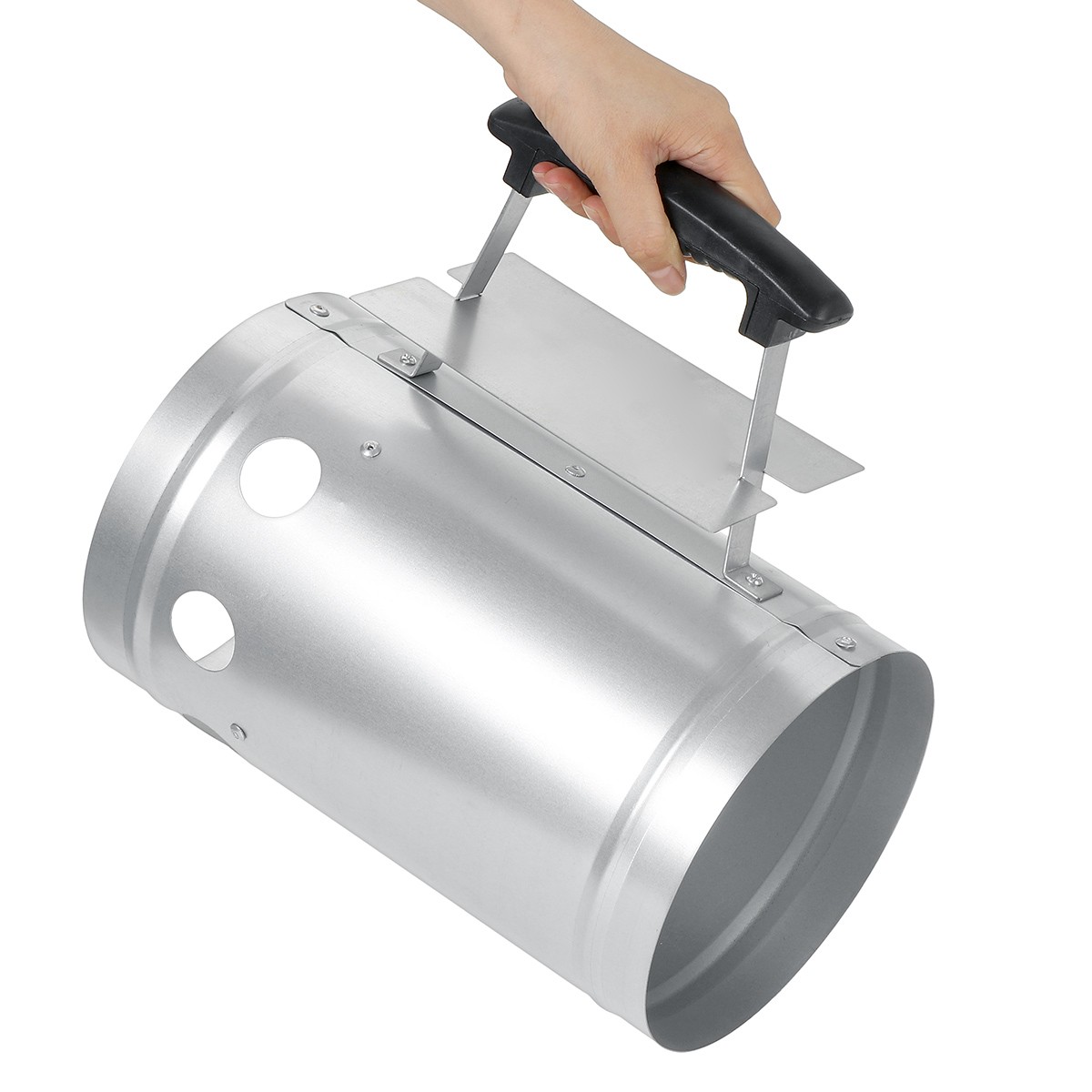 【QUICKER AND SAFER】Galvanized Steel charcoal starter for grills used of chimney principle and start your barbecue BBQ in the shortest possible time. Fire grill starter subvert the traditional point. About 15-20 minutes the coals will be red hot. It is not need to use any lighter fluid such as lump cubes, squares, very save time and effort!