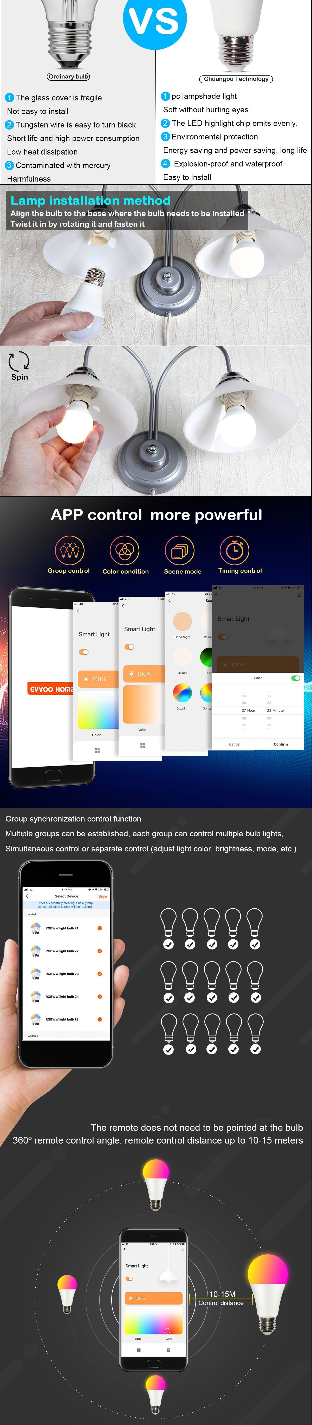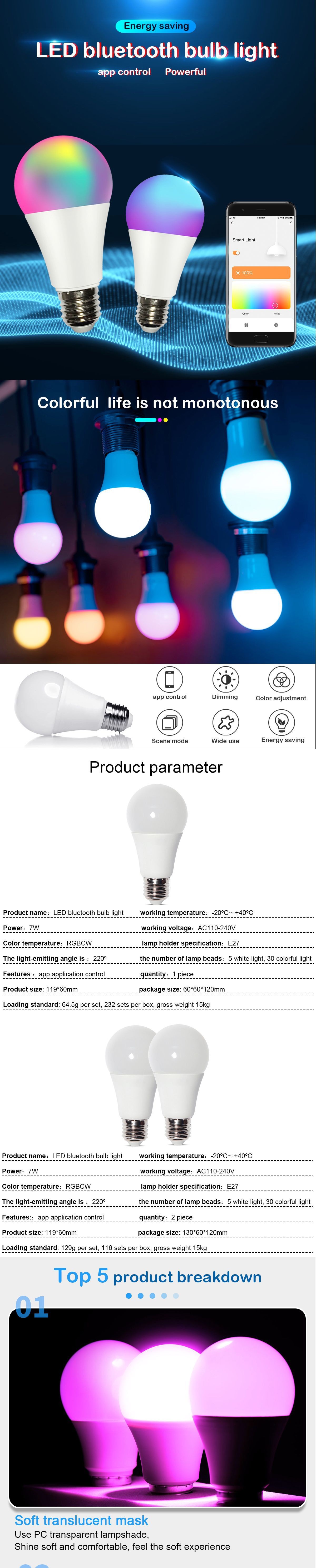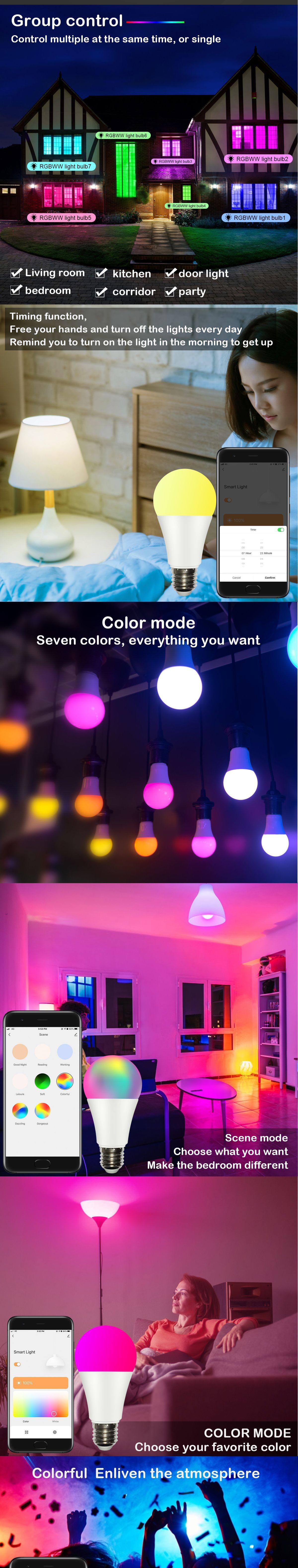 RGBW Bluetooth Mobile Phone APP Smart Bulb Control Dual Color Temperature Lamp Color Bulb