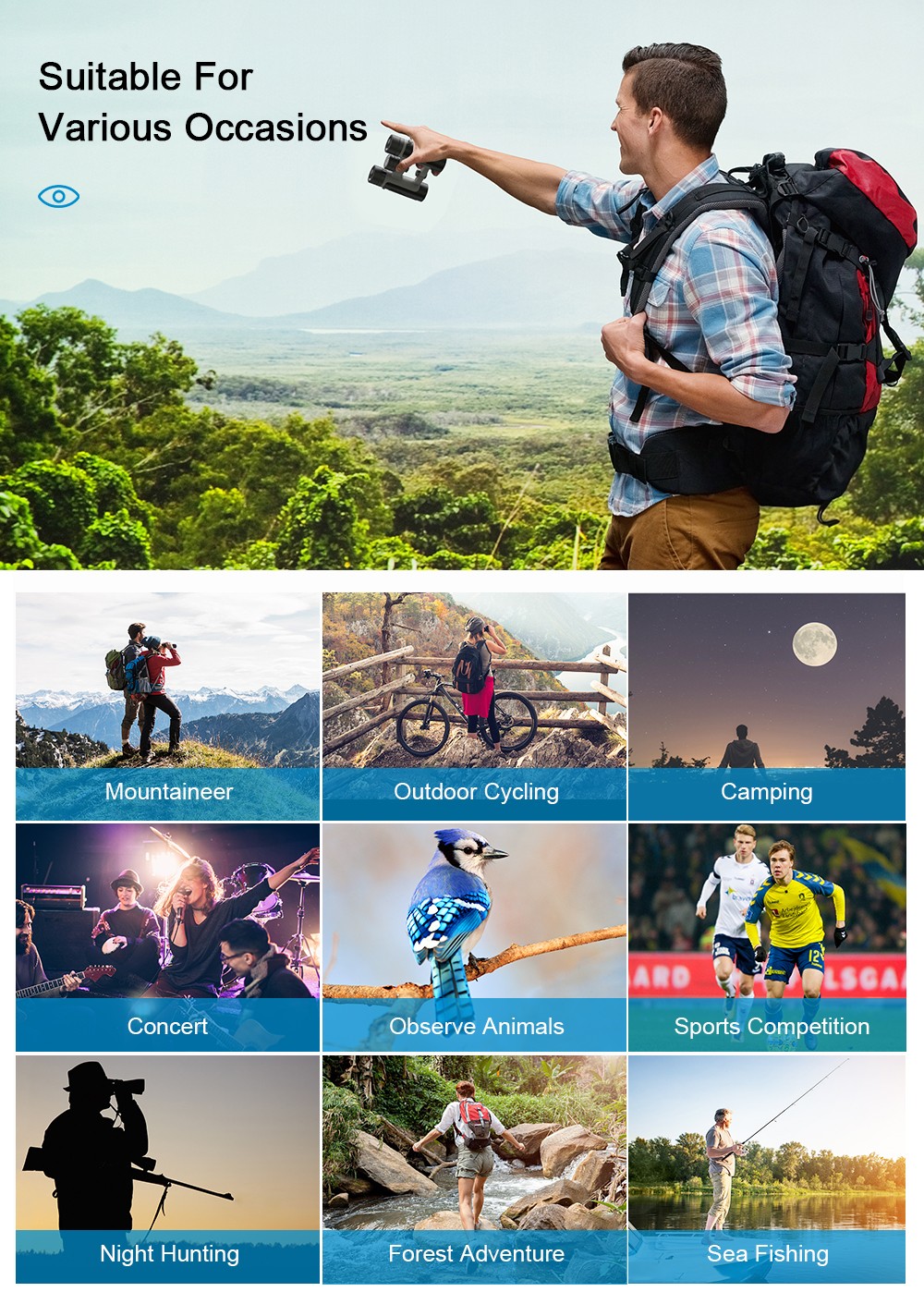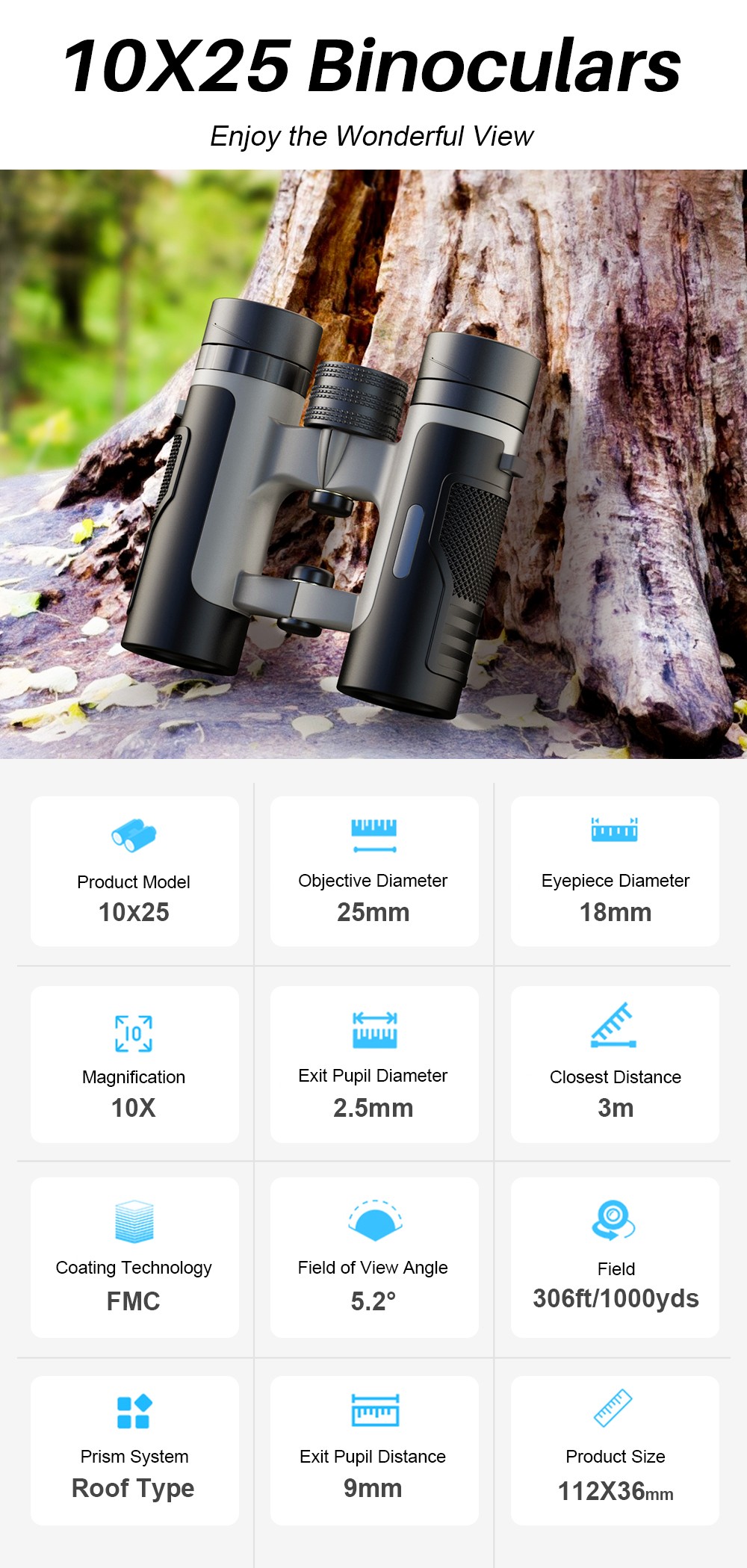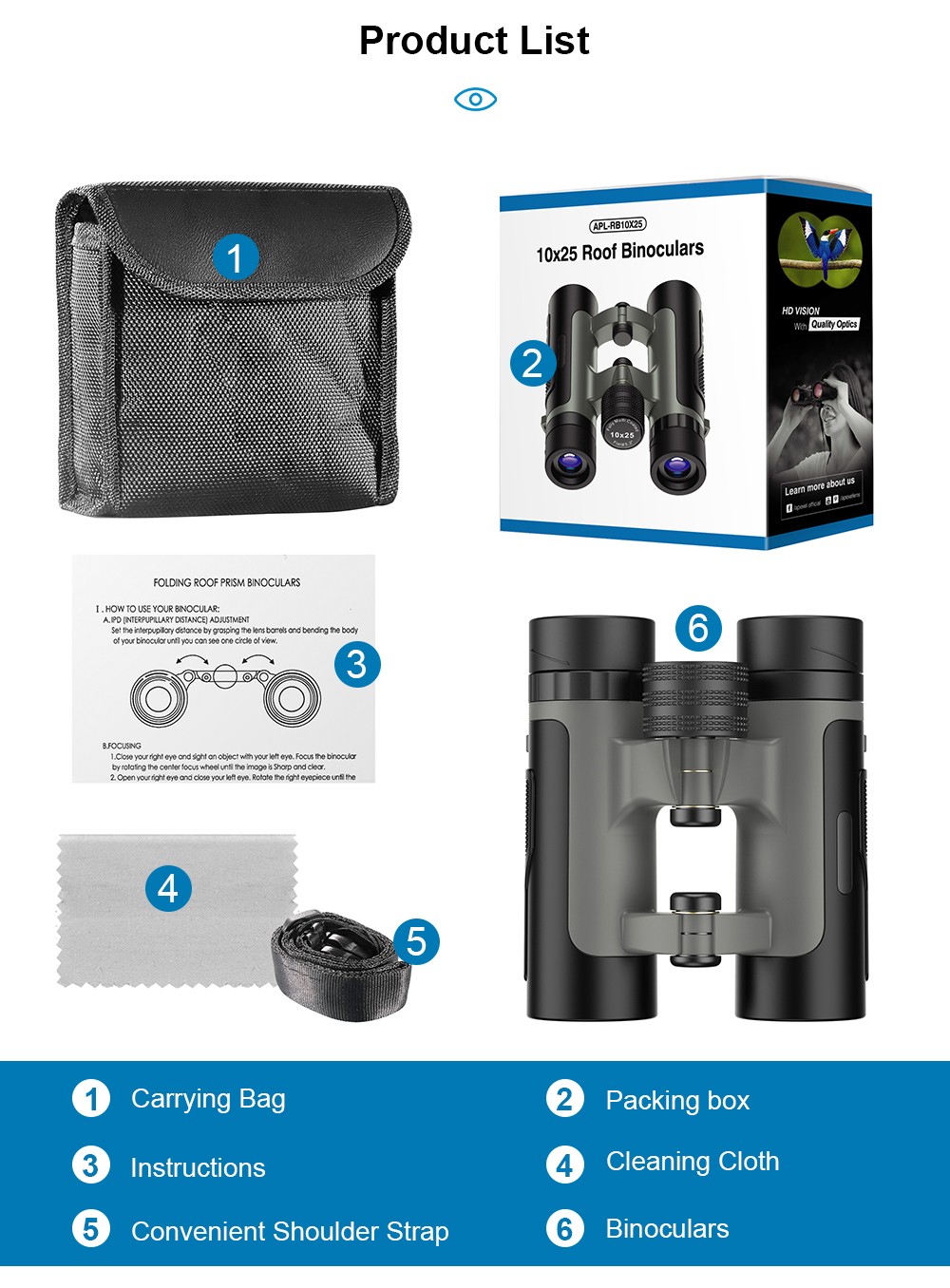 APEXEL 10x25 Binoculars HD Telescope Foldable Body Mini Portable Night Vision Outdoor Camping Hunting Binoculars