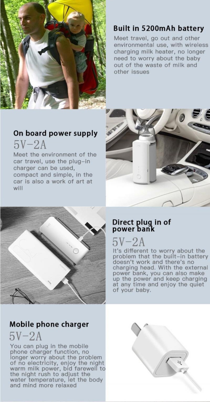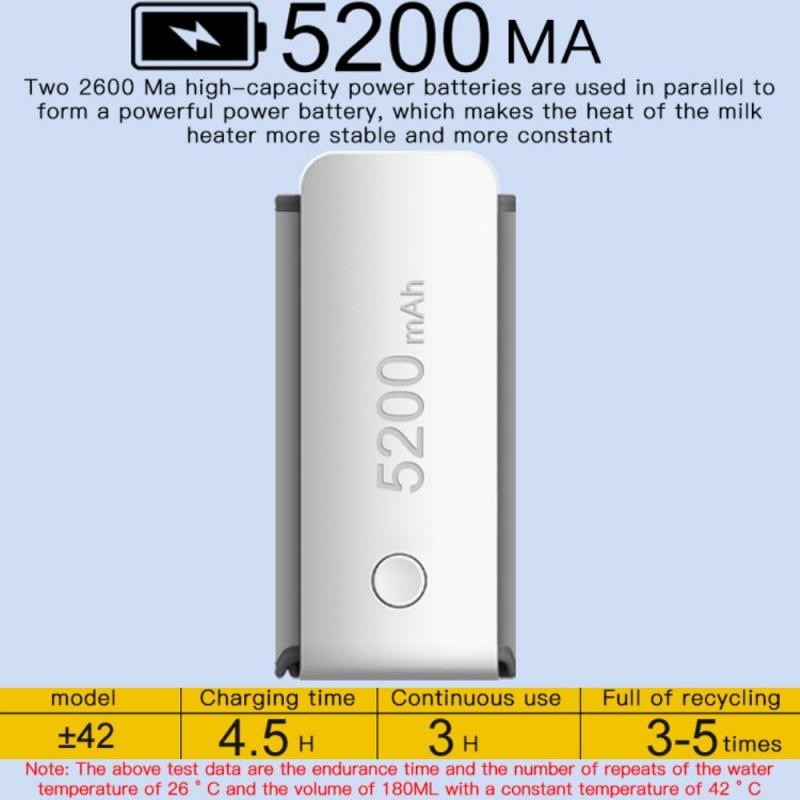 - Large battery capacity ensures more stable heat and longer-lasting insulation of the milk warmer.
