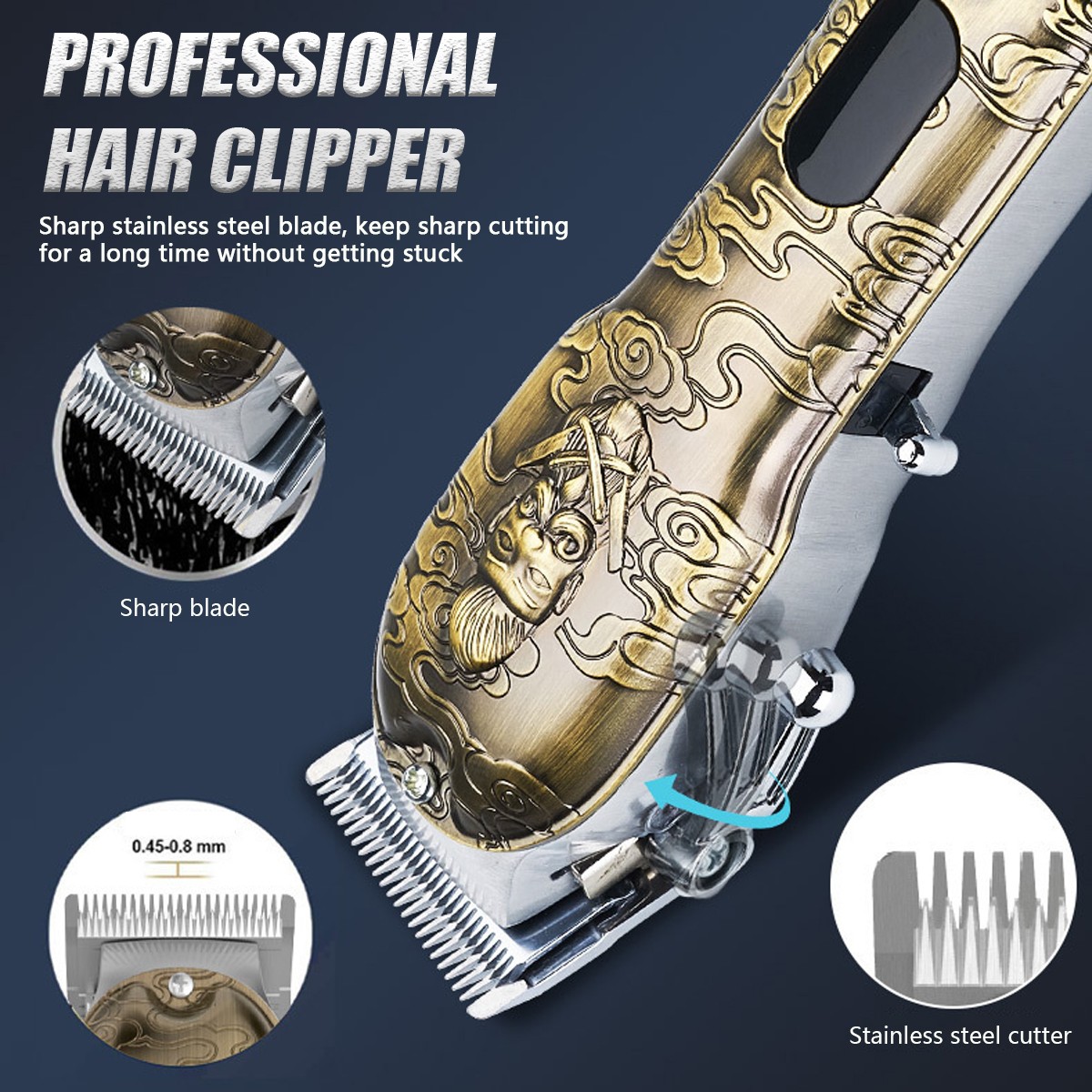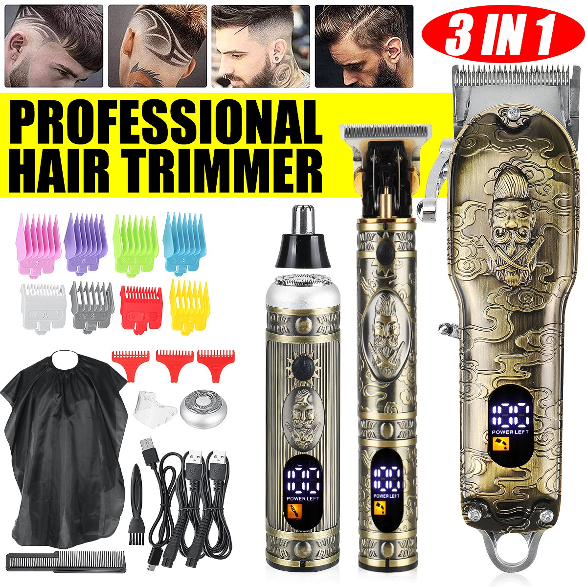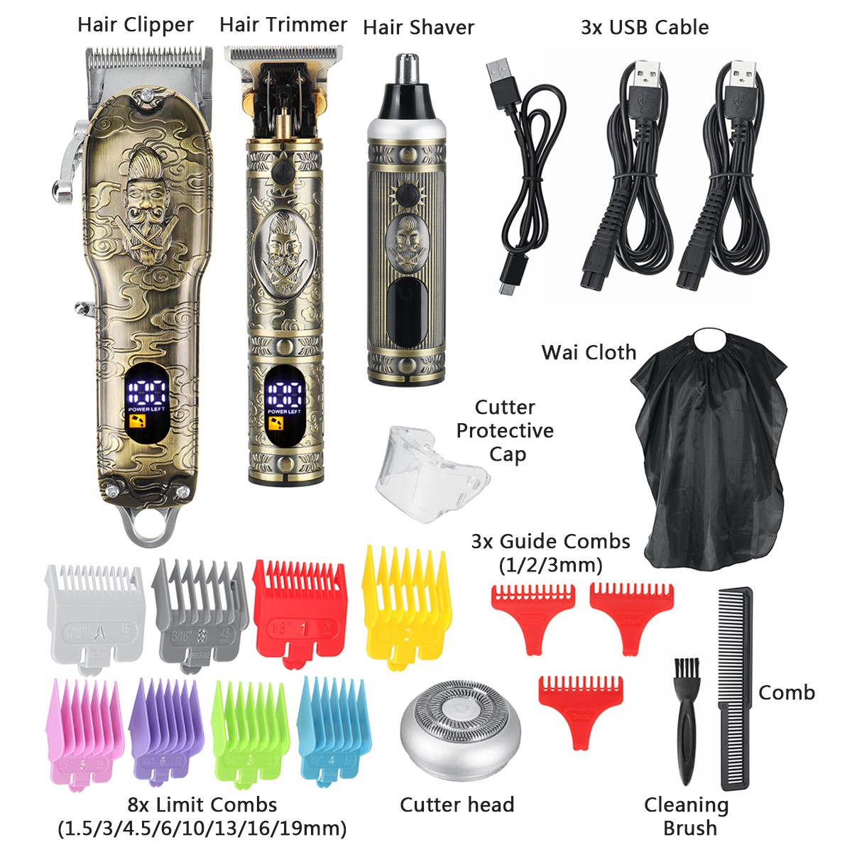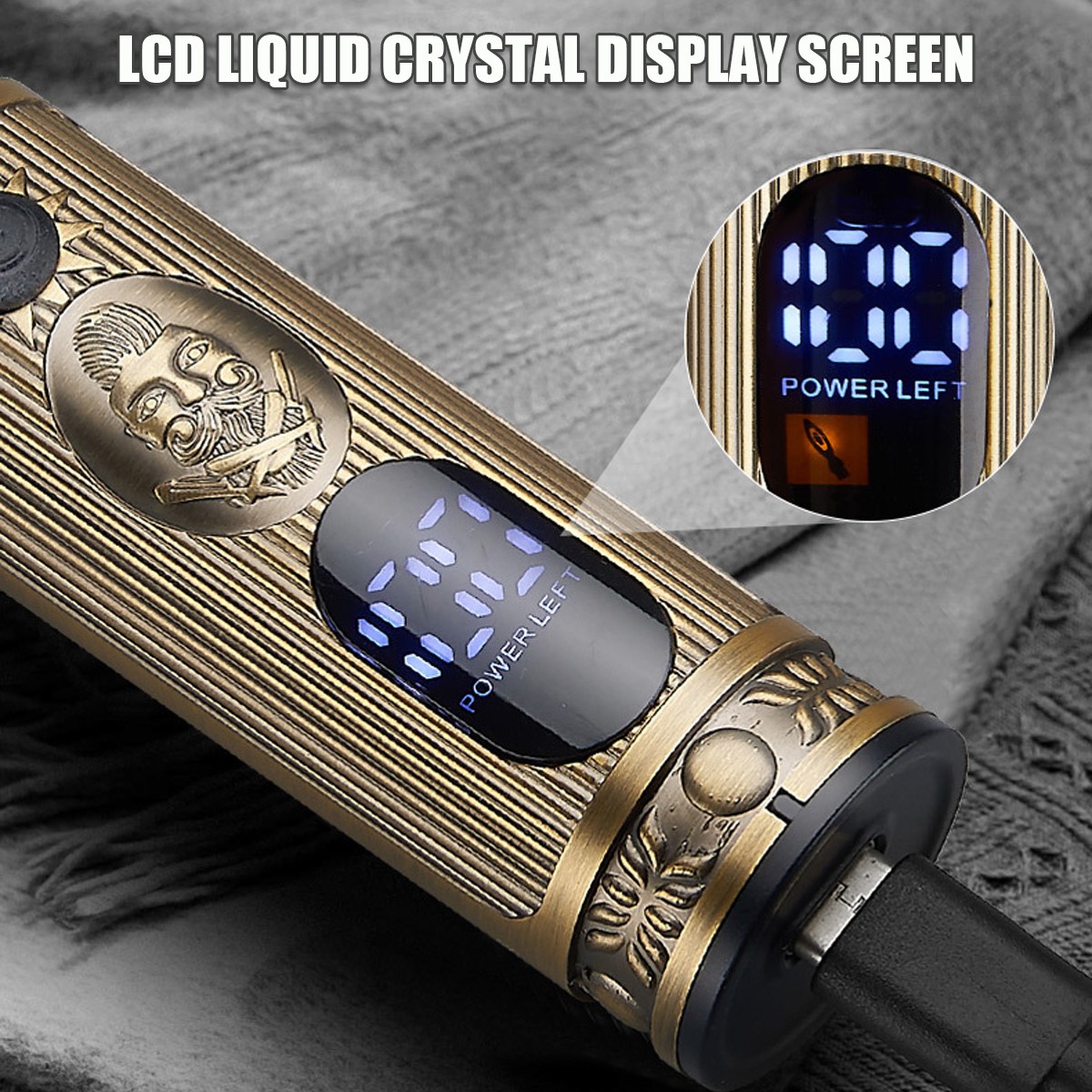3-in-1 Embossed Retro Hair Clipper LCD Liquid Crystal Display Hair Trimmer High Power USB Charging Hair Shaver