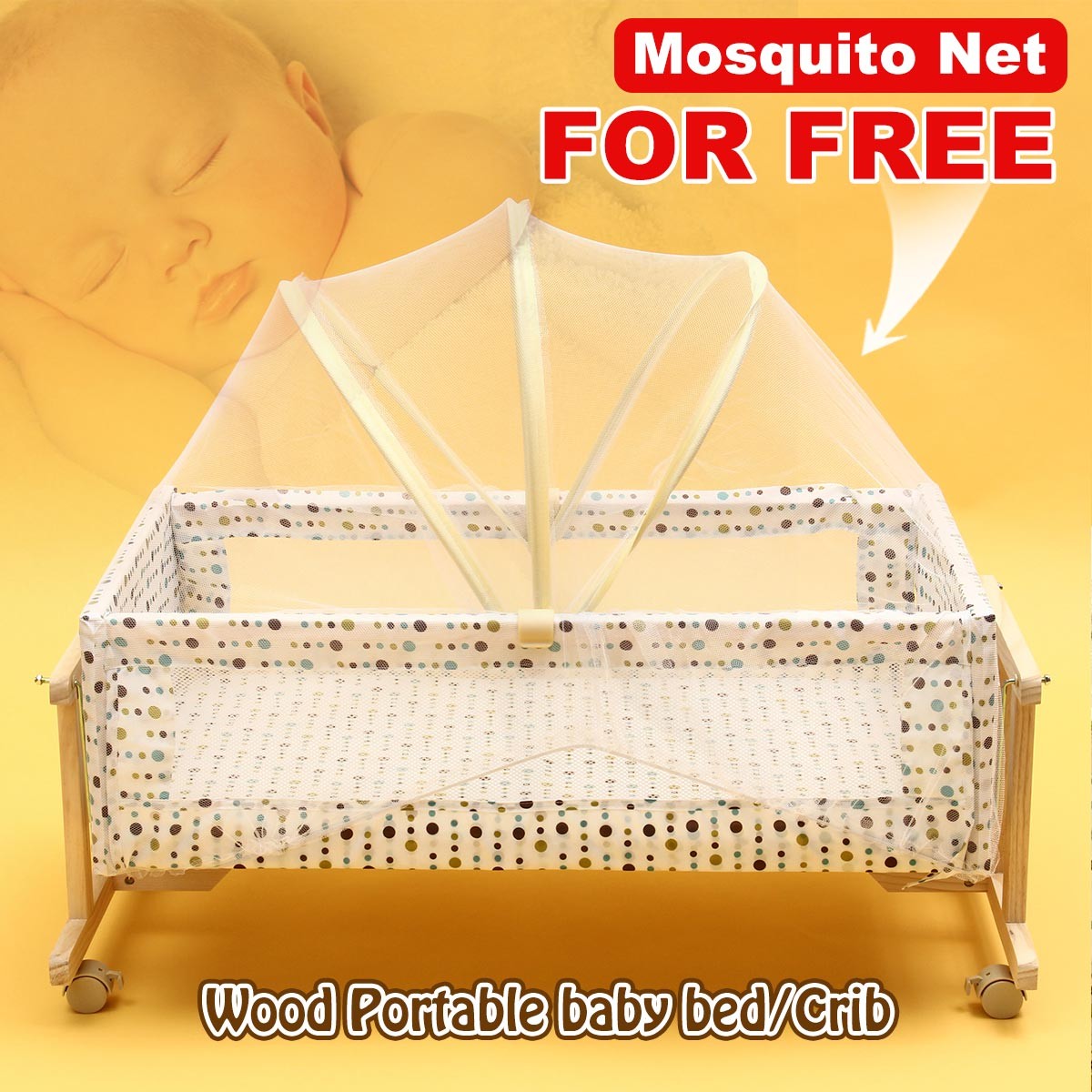 Wood Baby Cradle Rocking Crib Bassinet Bed Sleeper Portable Nursery