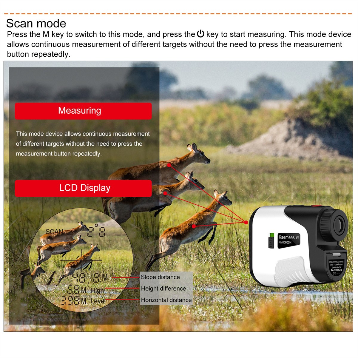 Multiple Modes to Choose: This golf rangefinder adopts advanced slope tech suitable for golf and provides 5 modes, All-in-one mode/Scan mode/Two-point height measurement mode/Speed mode/Golf Distance Correction Mode