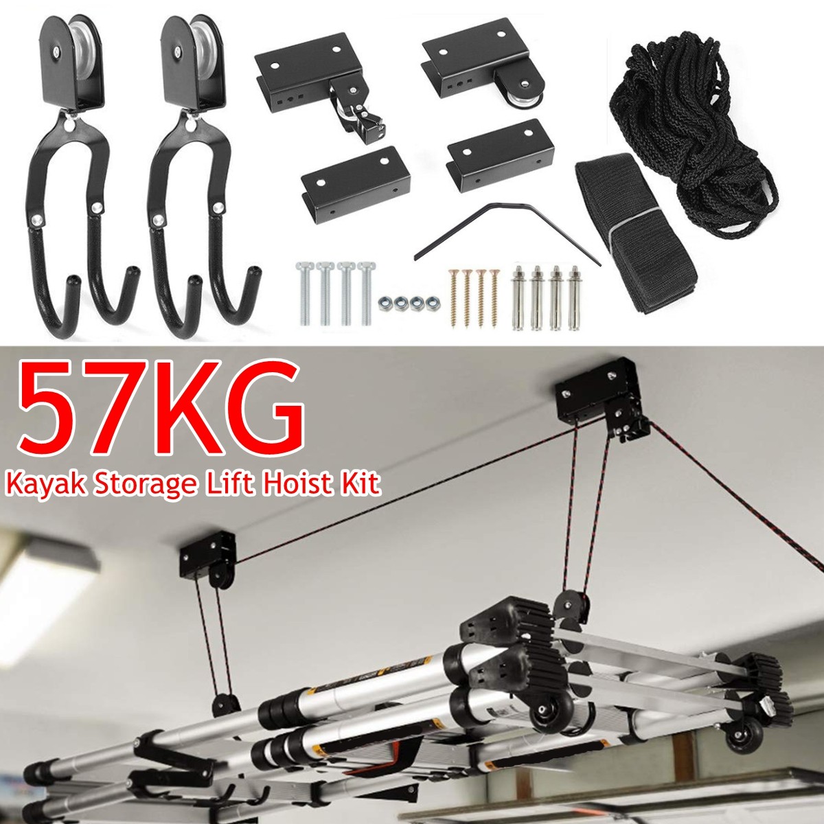 57KG Kayak Hoist Bike/Ladder Lift Pulley System Garage Ceiling Storage Rack Kayak Storage Lift Hoist Kit
