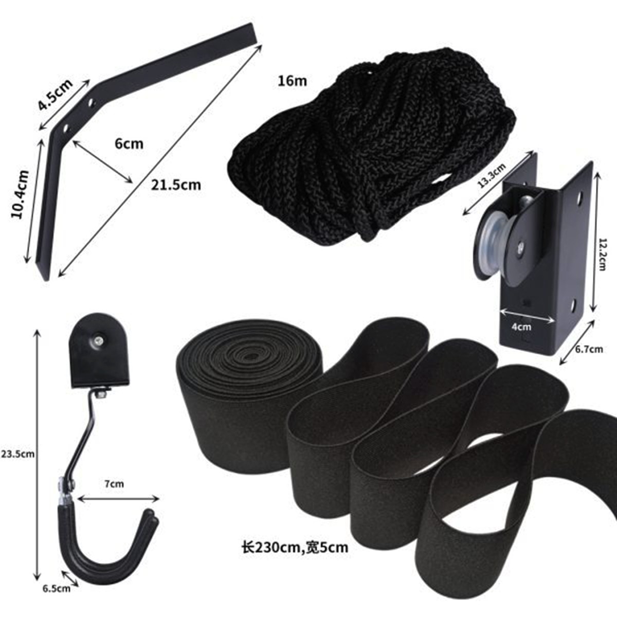 【2 SUSPENSION METHODS】 Our bicycle ceiling storage hoist has “J” shaped hooks, which is more curved that can hook bicycle or ladder easily. There are also 2x 8.5ft adjustable loading straps that can tie kayaks or other objects tightly, and it is long enough that fits all kayaks widths and lengths. Both suspension methods makes good use of your overhead space and saves your space.
