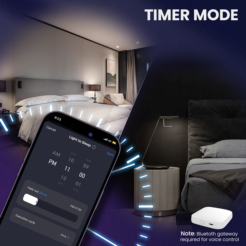 Timer/Schedule: Set the light to turn on/off at a specific time, just like you can set the cycle time (24 hours), the light will automatically turn on and off every day.