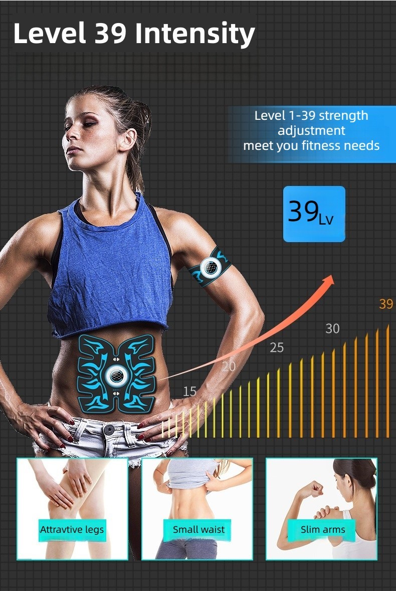 Smart Fitness Abs Trainer 39 Strength EMS Electric Body Exercise Levels USB Rechargeable LED Display Safety Home Gym Muscle Building
