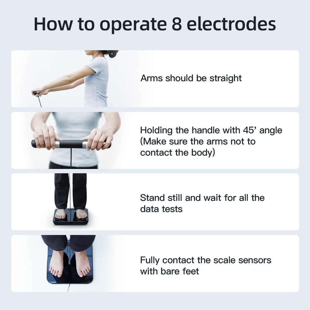 1. Accurate Measurements: Utilizes an 8-electrode system for precise body fat measurement.