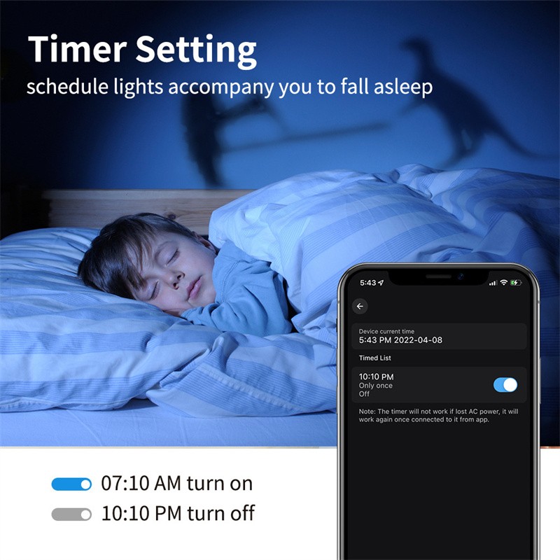5. Timing function, timed on/off, timed light on and execution of a certain color built-in custom mode, etc., slow on/off, delayed on/off