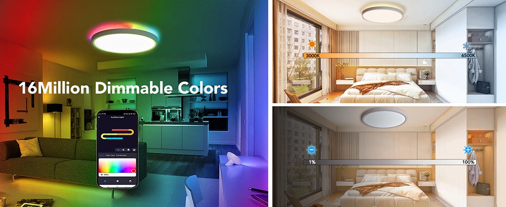 - 16 Million Dimmable Colors: With 16 million color options to choose from, customize your room's ambiance to fit any mood or occasion. Easily adjust the brightness and color temperature from 3000K to 6500K.