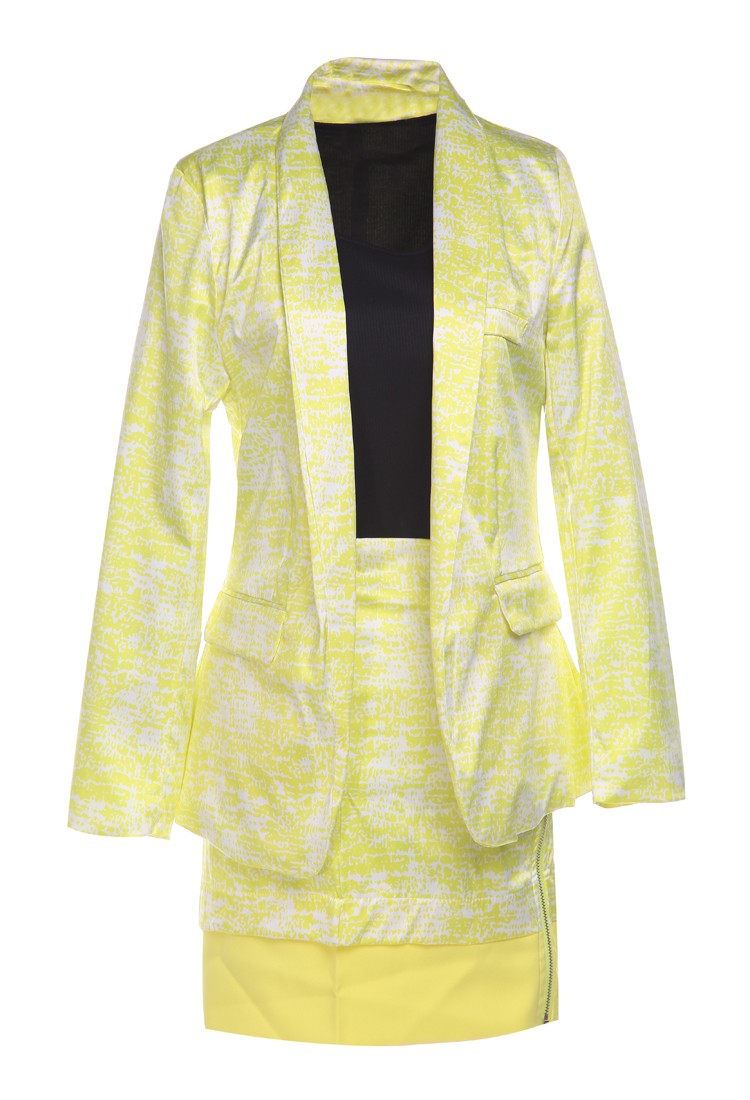 Women's Office 2-piece Short Skirt And Suit Yellow Black Suits