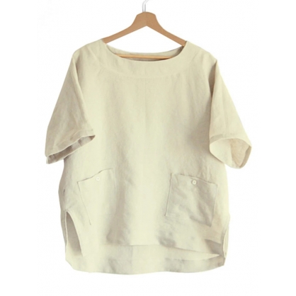 Plus Size M-5XL Casual O-neck Short Sleeves Solid Color Blouse with Pockets