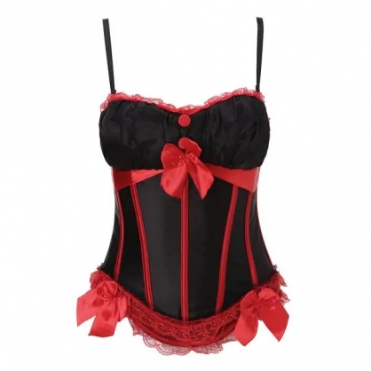 Sexy Pink Women Strap Lace Satin Corset Bustier