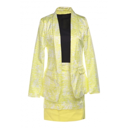 Women's Office 2-piece Short Skirt And Suit Yellow Black Suits