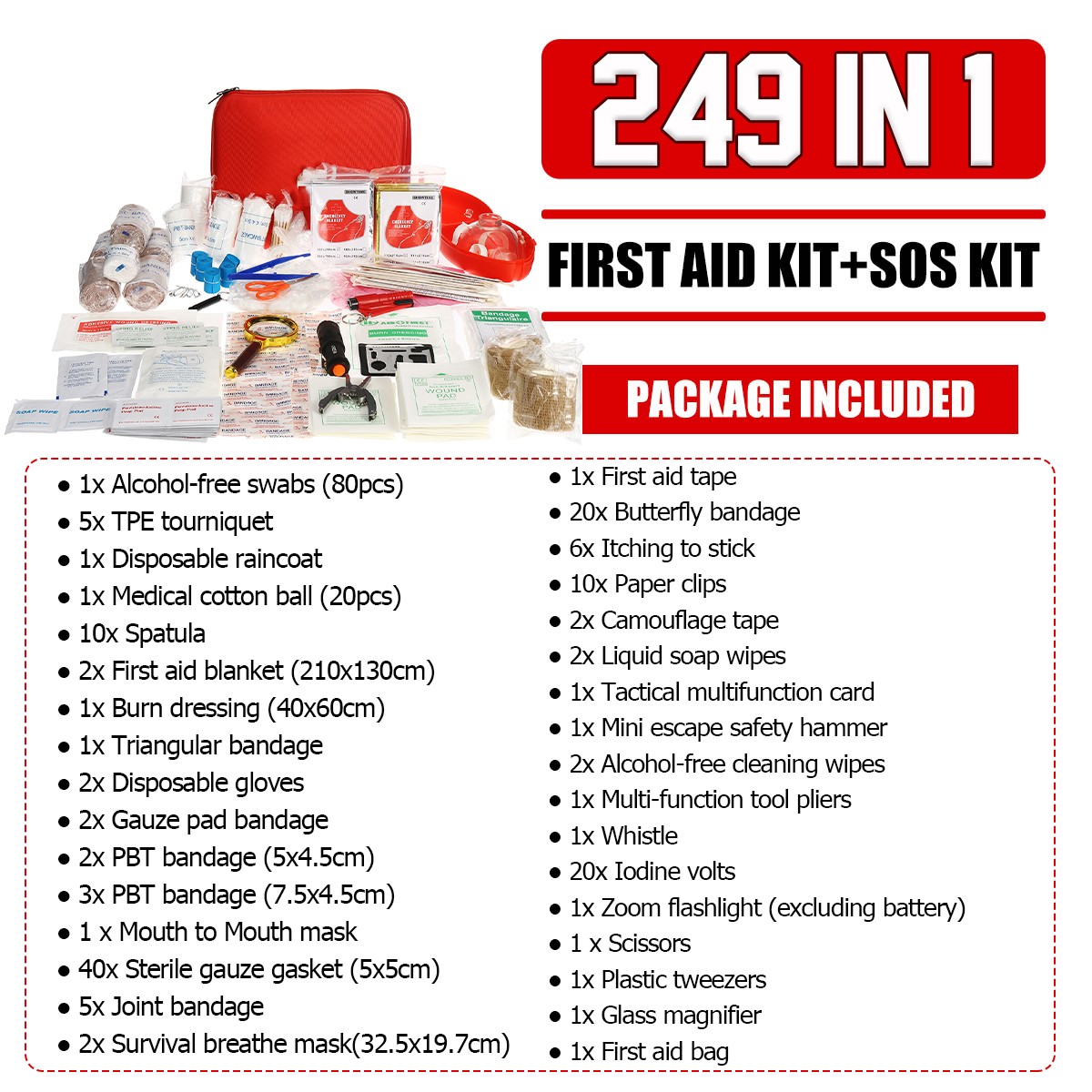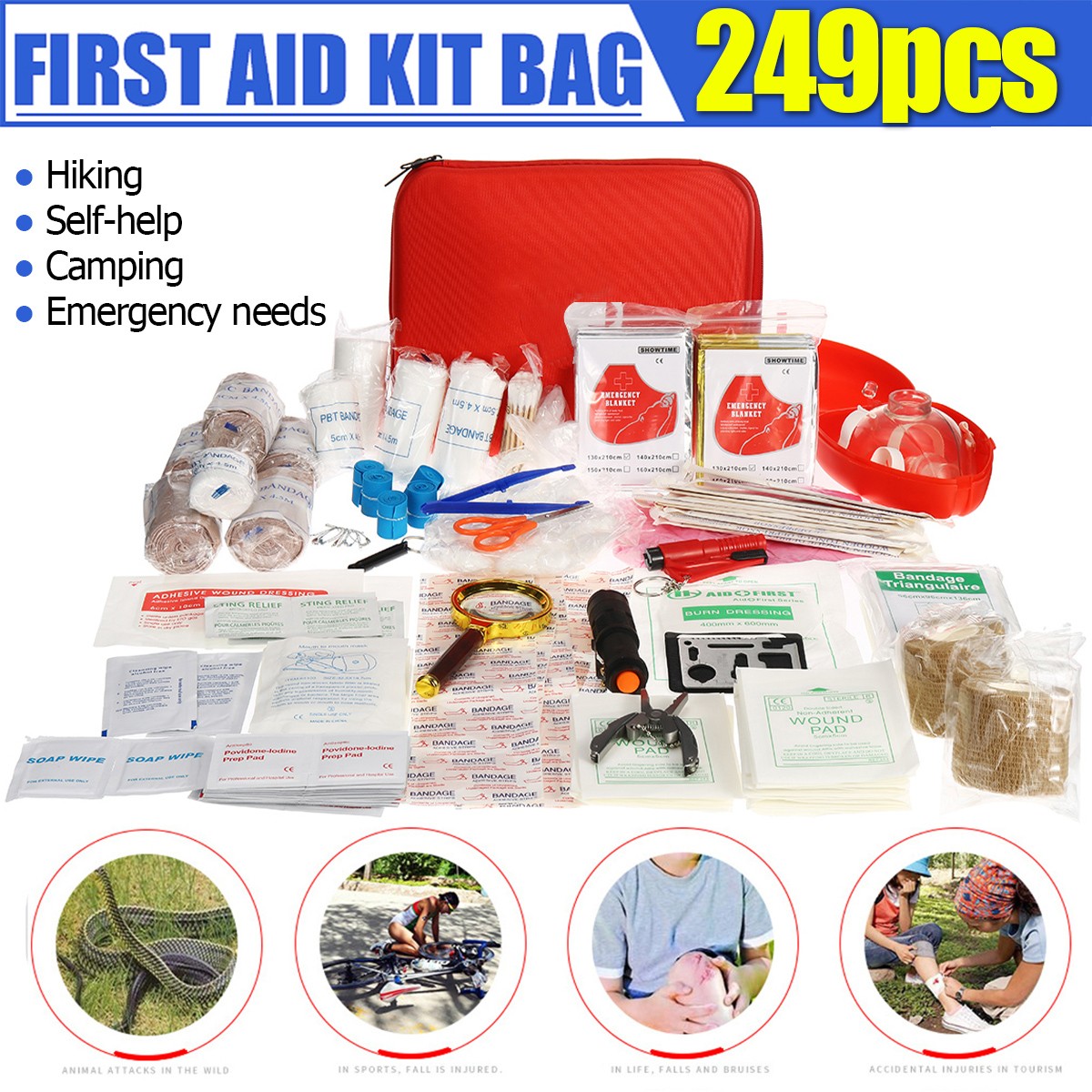 249Pcs 34Types SOS Survival Equipment First Aid Kit Wound Treatment Tools For Outdoor Activities Camping Hunting