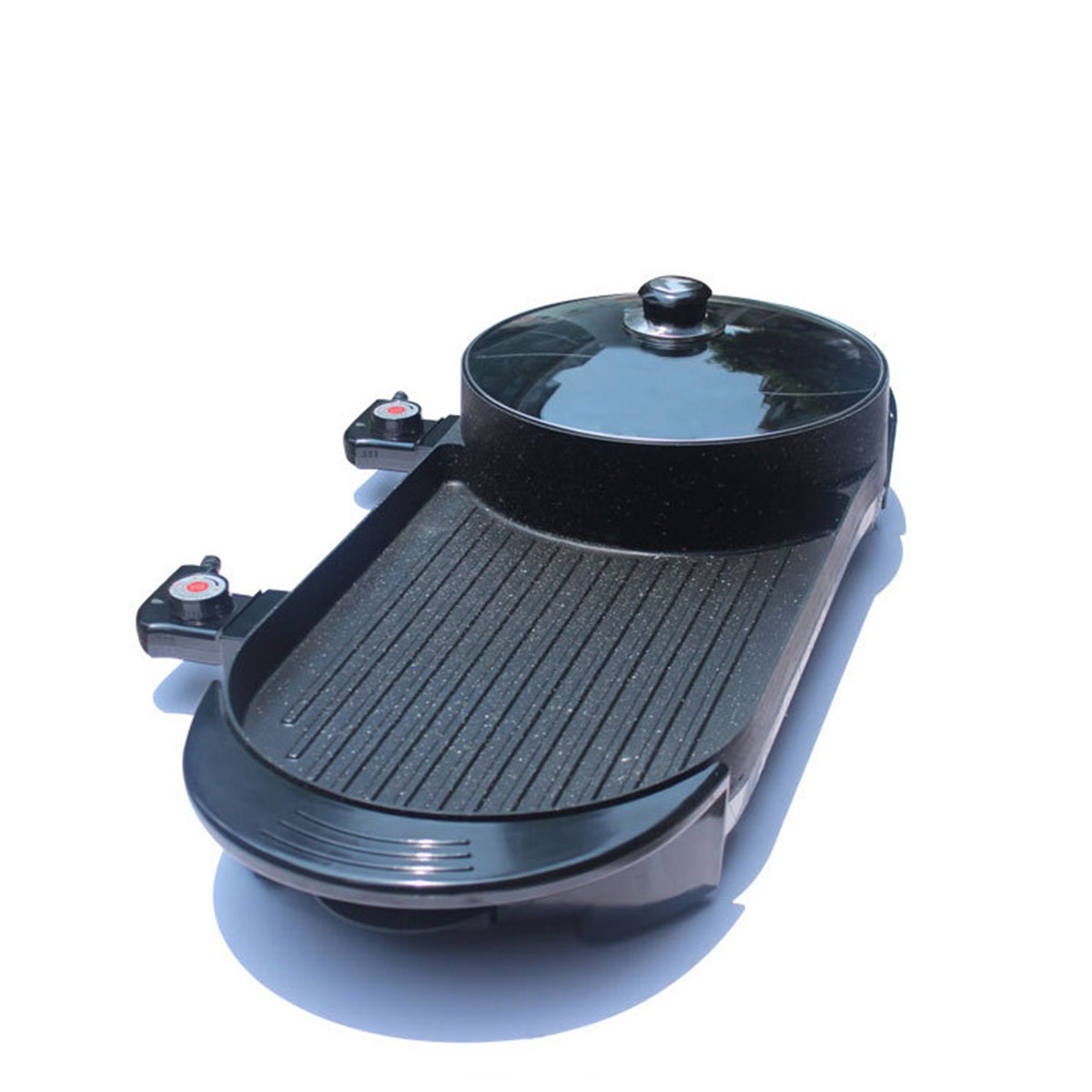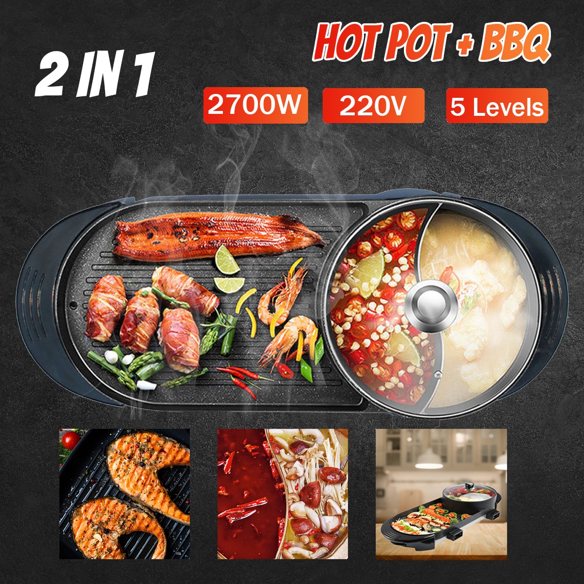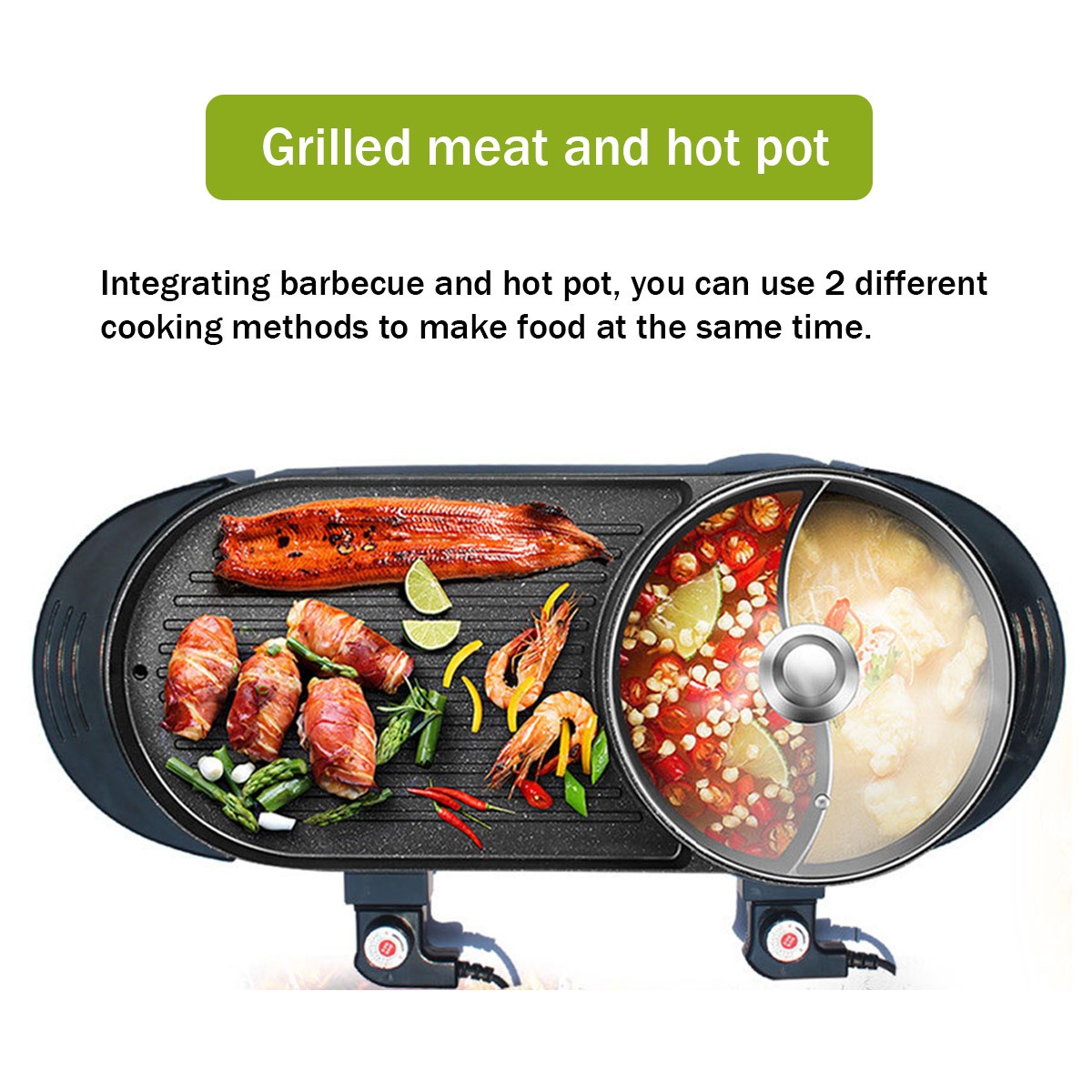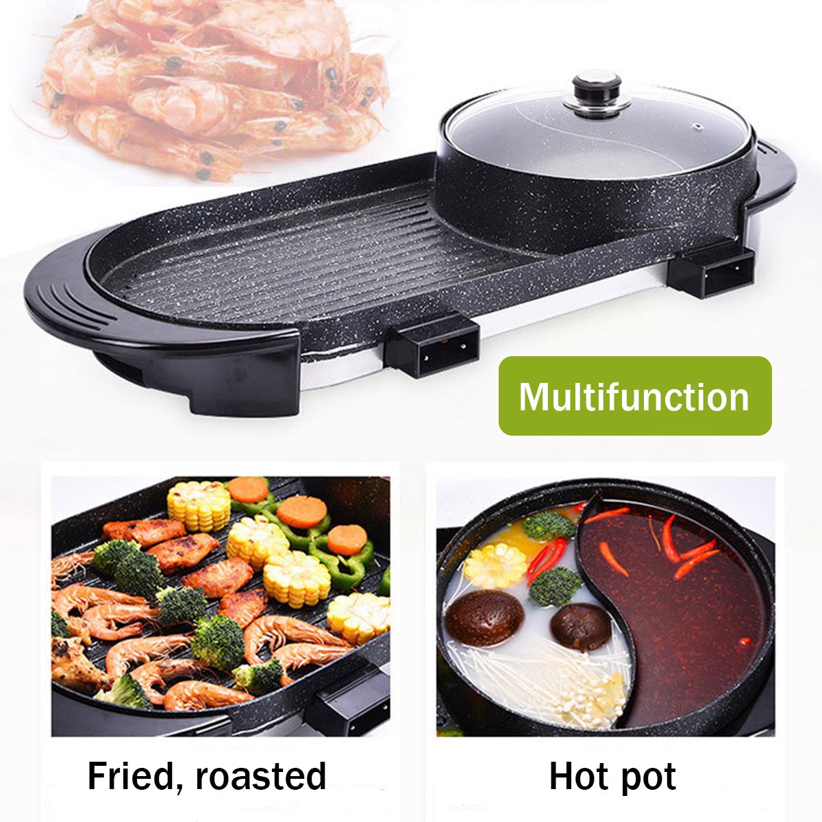 2 In1 220V 2700W Electric Grill Hot Pot Oven BBQ Pan Teppanyaki Smokeless Cooker With 5 Levels of Temperature Adjustment - Generic - Electric Grills