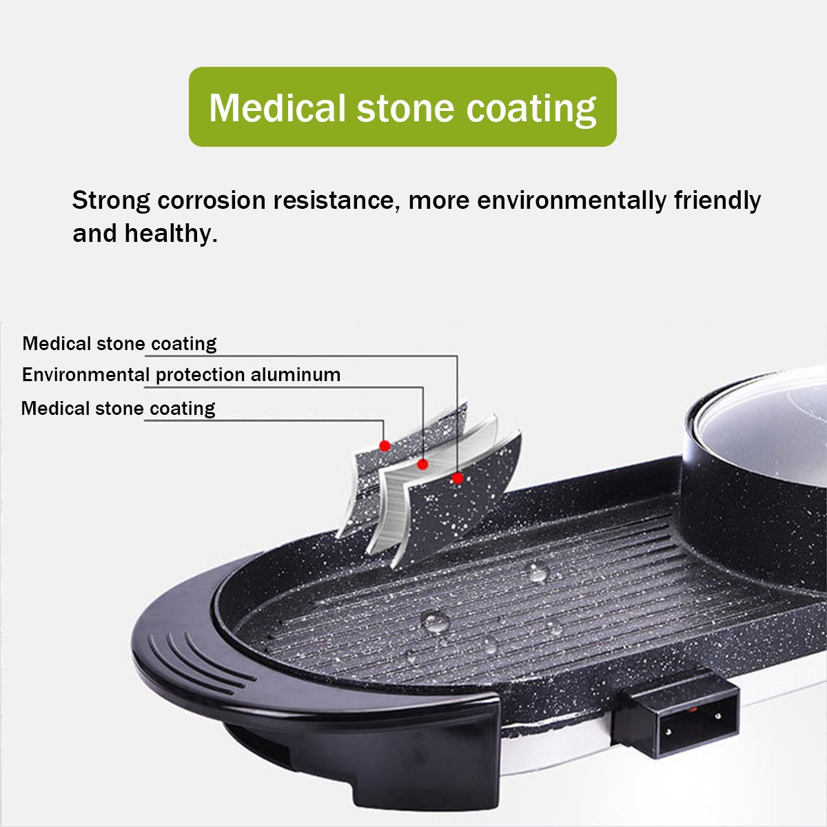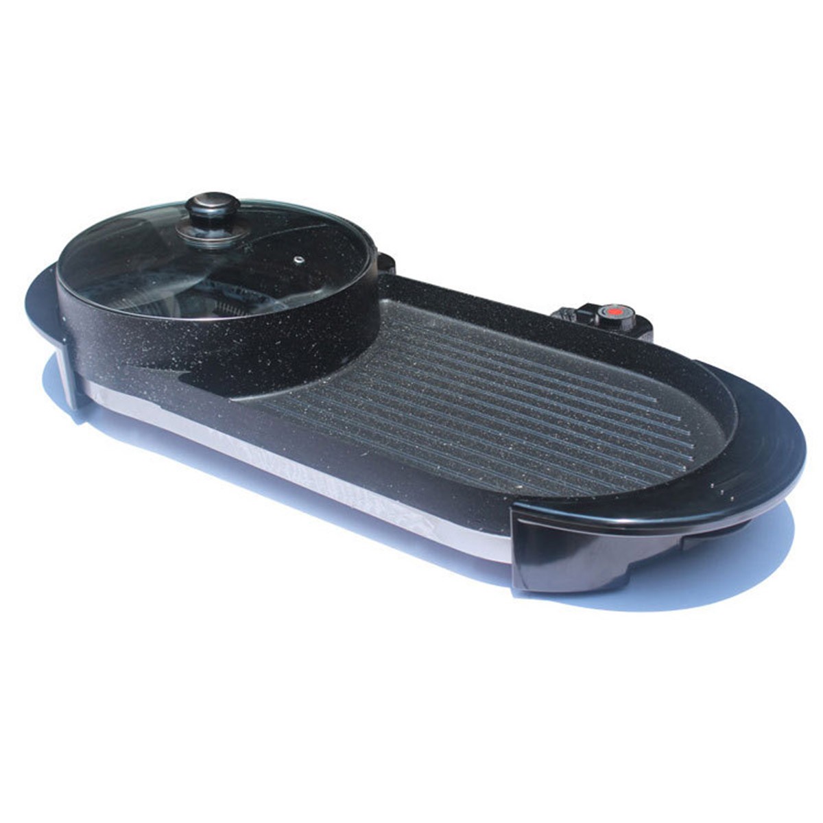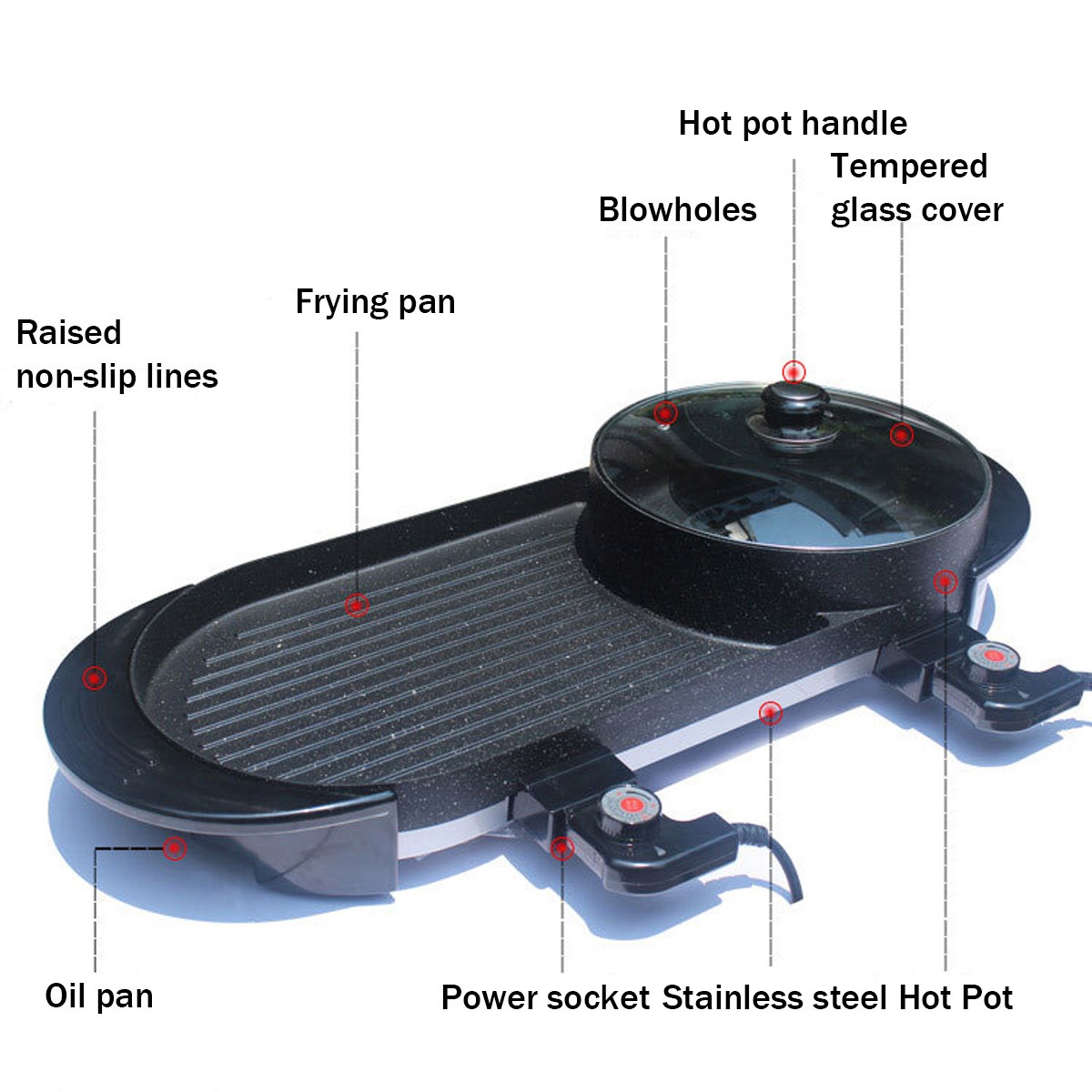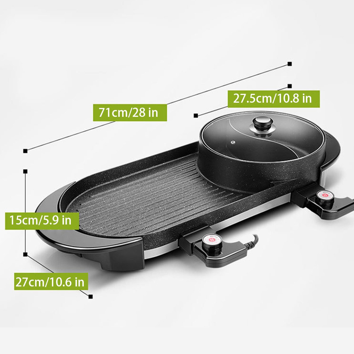 2 In1 220V 2700W Electric Grill Hot Pot Oven BBQ Pan Teppanyaki Smokeless Cooker With 5 Levels of Temperature Adjustment - Generic - Electric Grills