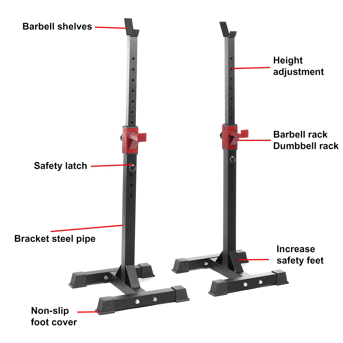 1 Pair of 16 Gear Adjustable Barbell Rack Stand Squat Bench Press Rack for Home Gym Weight Liftting Fitness Exercise