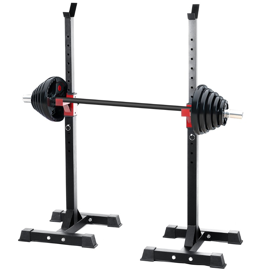Adjustable: The barbell stands have adjustable safety pins on each post to